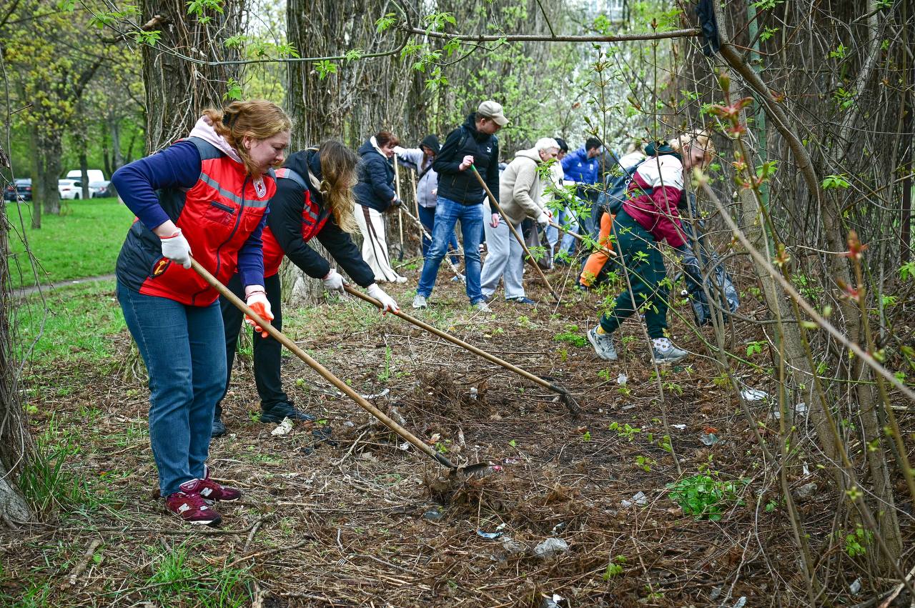 Сьогодні у Святошинському районі провели толоку на чотирьох локаціях. Приводили до ладу території, прибирали, вивозили сміття — робили те, що формує нормальний простір для життя.