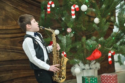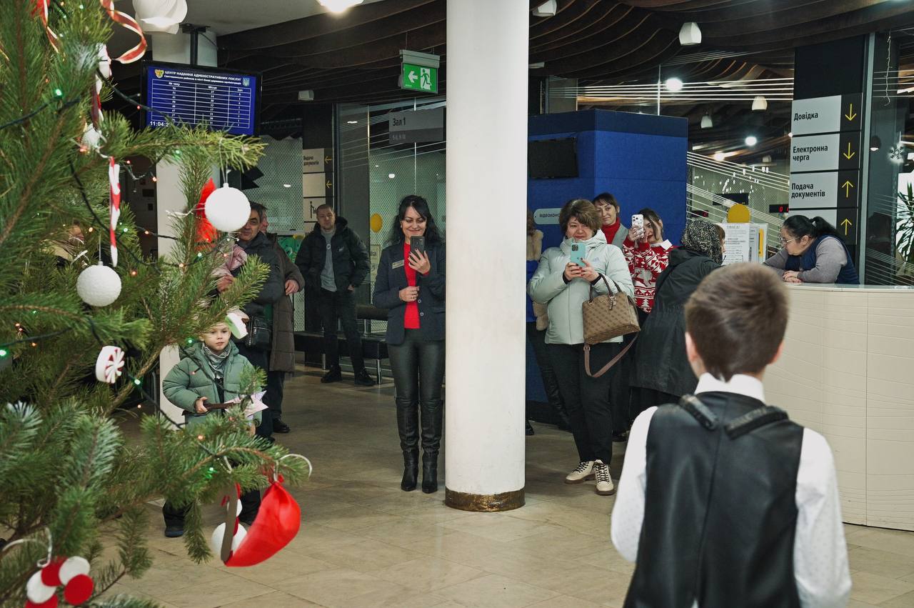 Сьогодні в Центрі надання адміністративних послуг Святошинської РДА на Різдво завітав маленький саксофоніст