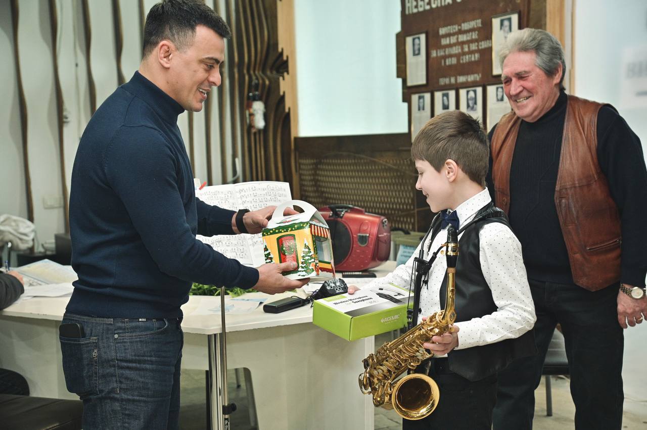 Голова Святошинської РДА Георгій Зантарая подякував юному музиканту за чудовий виступ та вручив невеличкий подарунок, як символ підтримки й уваги до таланту та ініціативи дітей.