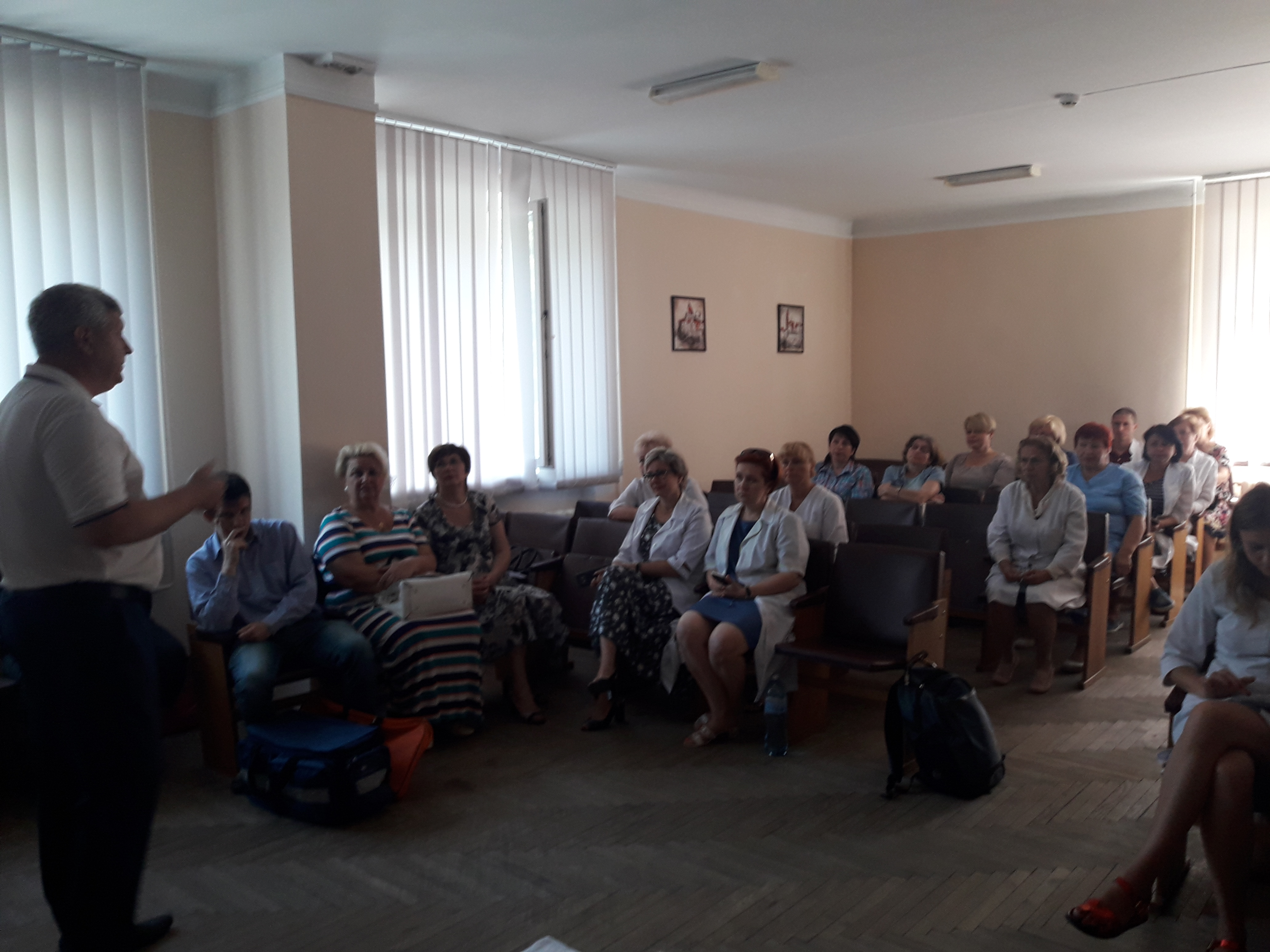 Днями в комунальному некомерційному підприємстві «Центр первинної медико-санітарної допомоги № 2» Святошинського району м. Києва на виробничій нараді було підбито підсумки проведення спеціального тренування лікарсько-сестринських бригад центру, що входять до складу територіальної спеціалізованої медичної служби цивільного захисту. Керівник спеціального тренування директор центру Петрученко Н.В. у своєму виступі ознайомила колектив центру зі змістом проведеного тренування, що пройшло 26 червня 2018 року, з організацією заходу та метою його проведення