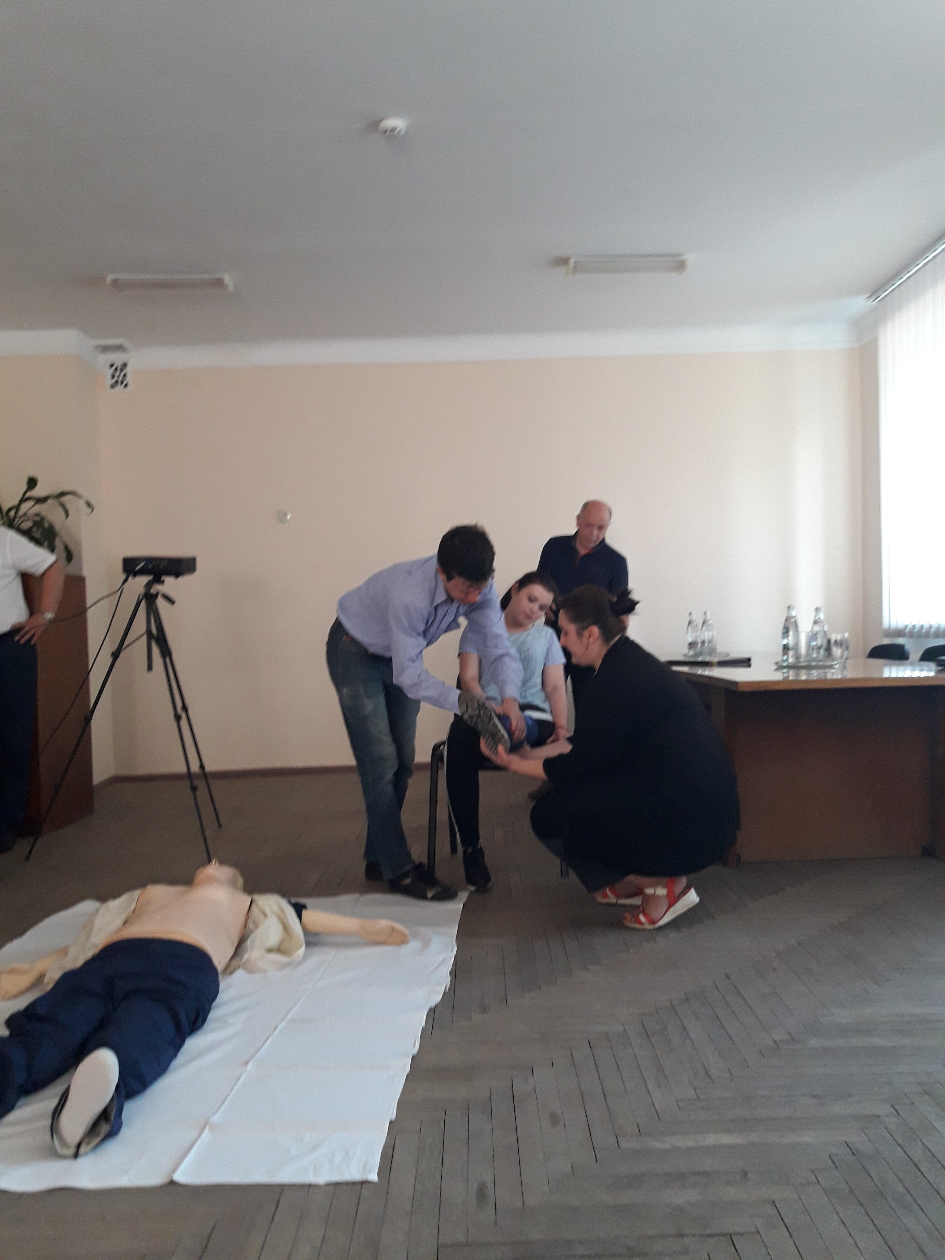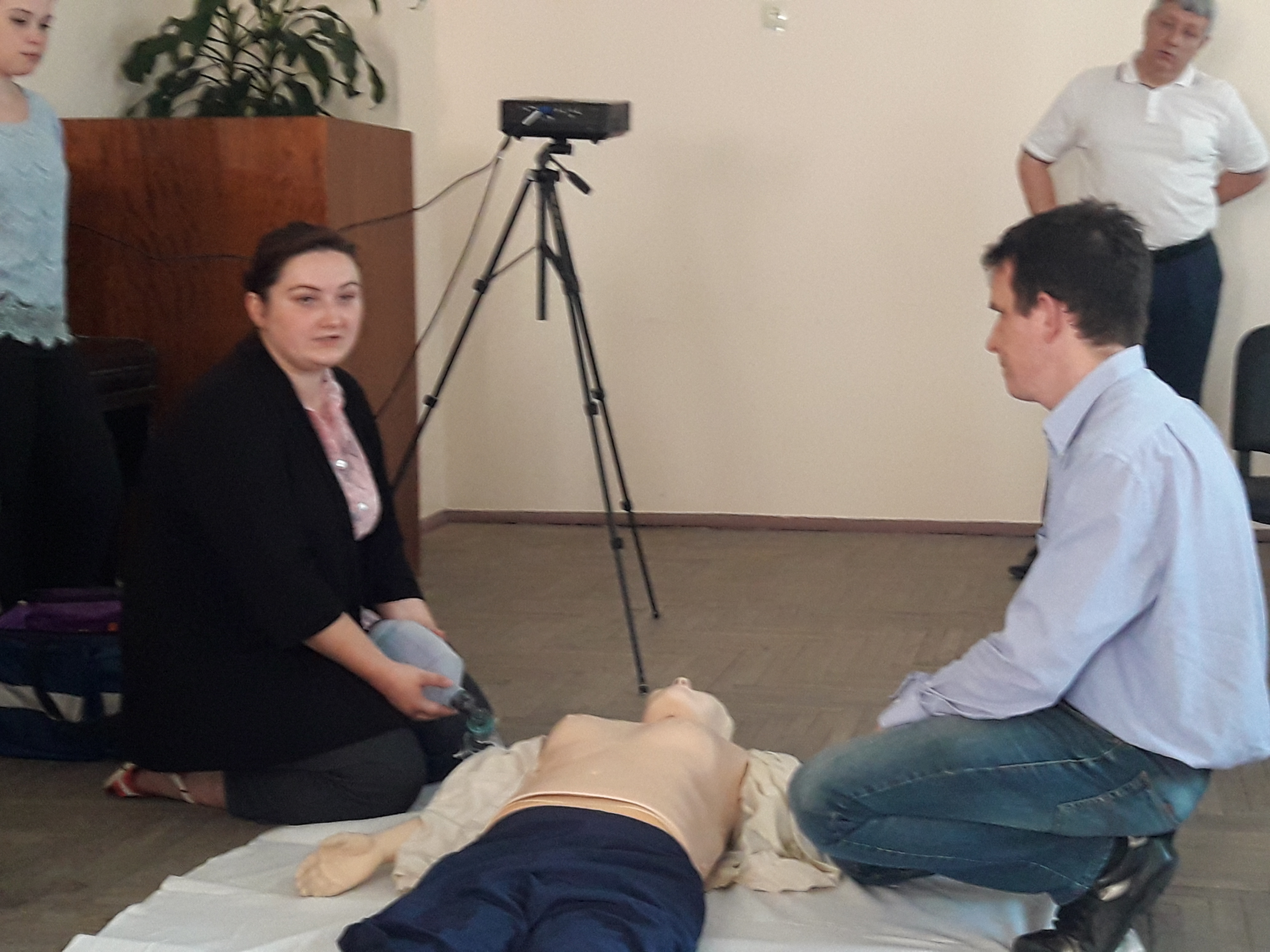 При проведенні тренування були присутні: виконувач обов`язків начальника управління охорони здоров`я Святошинського району м. Києва Алексеєнко Н.І.; головний фахівець з питань цивільного захисту управління охорони здоров`я Святошинського району м. Києва Кузьоменська Л.О.; головний фахівець відділу цивільного захисту Святошинського РУ ГУ ДСНС України в місті Києві капітан служби цивільного захисту Андріяш С.В.; майстер виробничого навчання Навчально-методичного центру цивільного захисту та безпеки життєдіяльності м. Києва Водолажський Ю.В.