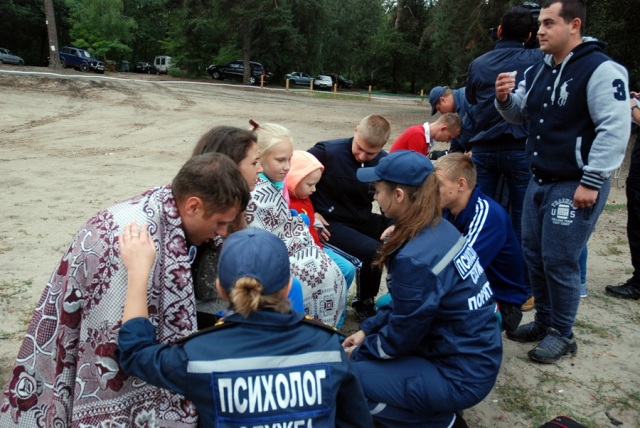 На допомогу прибувають рятувальні служби, яким необхідно не лише ліквідувати пожежу, а й врятувати усіх громадян. Діяти необхідно чітко і злагоджено, у кожної зі служб свій напрямок і зона роботи. Зокрема гасінням вогню займаються рятувальники ДСНС, КМДА та працівники лісництва. В той же час рятувальники Головного управління на катері проводять рятувальні роботи і транспортують потерпілих до безпечної зони, де їм надають медичну і психологічну допомогу.