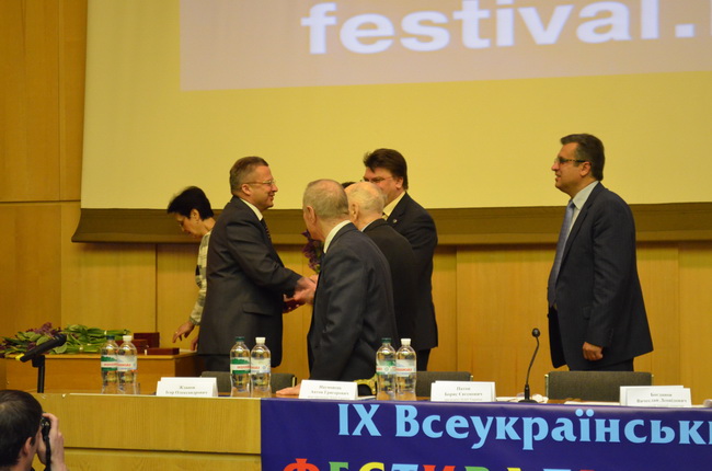 З вітальним словом до присутніх звернувся Борис Патон, академік, президент Національної академії наук України. Він тепло привітав присутніх із професійним святом – Днем науки, озвучив вітальний лист на адресу науковців від Президента України Петра Порошенка. Ігор Жданов, Міністр молоді і спорту України висловив щирі слова подяки науковцям за вагомий внесок у розбудову та впровадження винаходів, що конче необхідні державі. Посол Франції в Україні пан Ален Ремі, вітаючи присутніх із Днем науки зосередив увагу на спільних проектах науковців України та Франції, закликав до пошуків нових проектів співпраці.