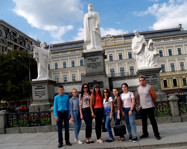 Студенти розпочали свою подорож, відвідавши пам'ятник Григорія Сковороди, який прикрашає Контрактову площу в Києві. Своєрідною прикрасою Контрактової площі в Києві є скульптура Дужого Самсона – одна з найбільш древніх скульптур українського Барокко. Незабутньою була екскурсія вулицею-музеєм – Андріївським узвозом.