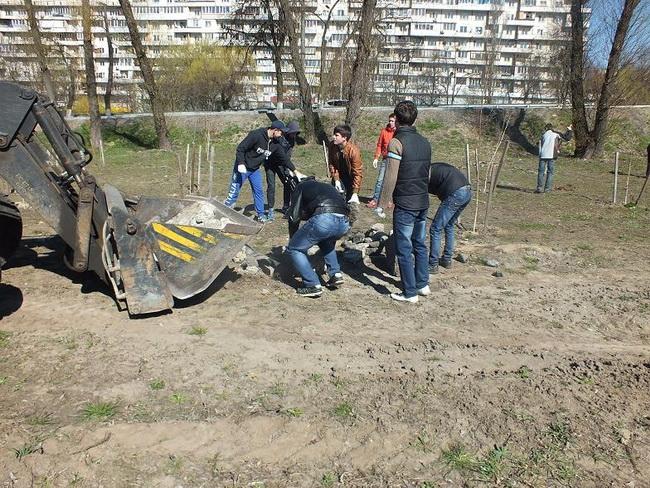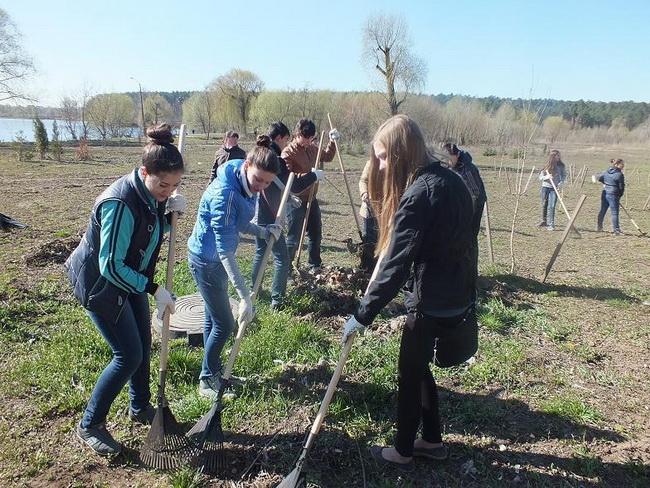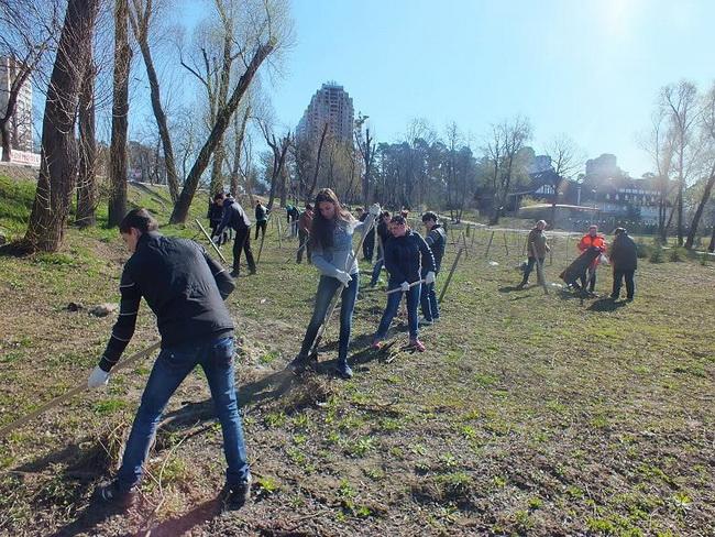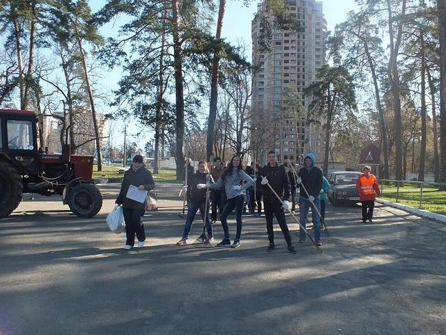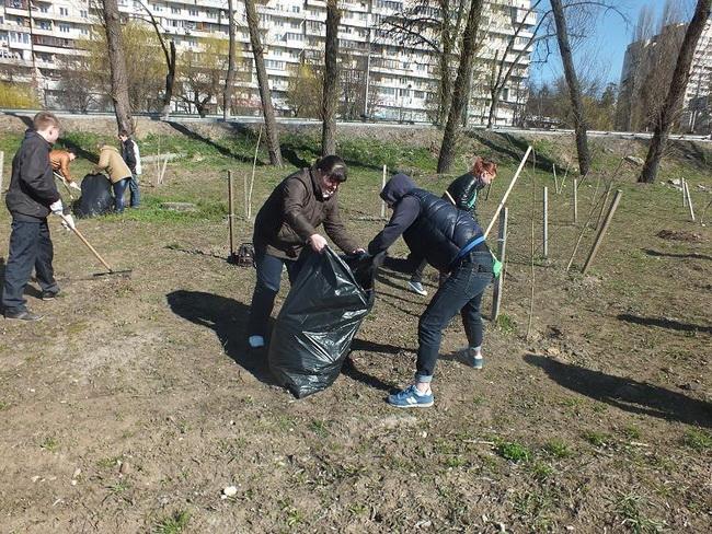Дружні колективи студентів під керівництвом майстра Валентини Іванівни Новак (ДПТНЗ «Міжрегіональний центр ювелірного мистецтва м. Києва») та заступника директора КПЛБКГ Валентини Володимирівни Самохвалової (Київський професійний ліцей будівництва та комунального господарства) облагороджували територію вздовж озера по проспекту Перемоги, 135.