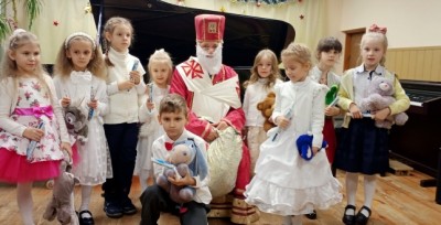 концерт «Святий Миколай до нас завітай». Під керівництвом викладача хору Олени Маєвої та у супроводі Ірини Дьяченко юні музиканти співали та дарували свої інструментальні музичні вітання глядачам.
