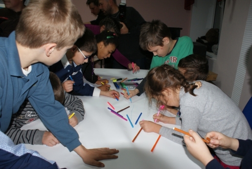 На завершення свята вихованці інтернату вирішили намалювати малюнки - вітання бійцям 13 батальйону територіальної оборони, які відстоюють цілісність України в зоні АТО, щоб ті повернулися живими і здоровими, адже всі дорослі та діти хочуть жити в мирі і бути щасливими.