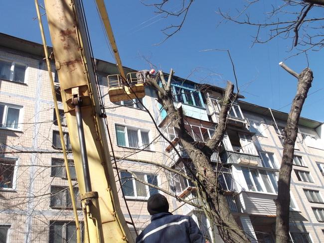 В першу чергу комунальники ліквідовують гілки, що заважають лінії електропередач, пиляють сухі небезпечні дерева, котрі ростуть поблизу автостоянок і тротуарів.