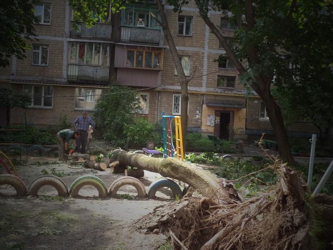 Негода не лише спричинила значні збитки зеленим насадженням району, але й стала причиною протікання покрівель житлових будинків, що потребують капітальних ремонтів.