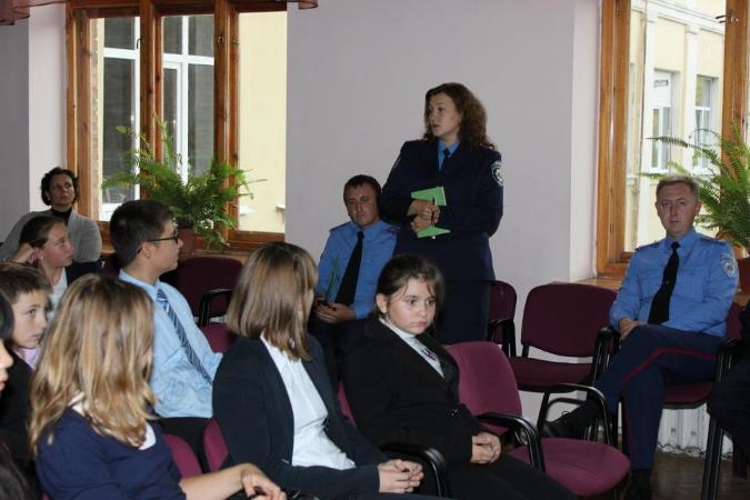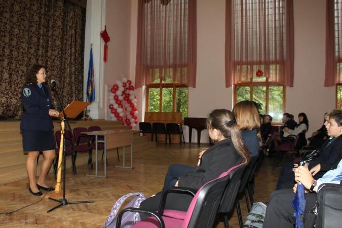 Працівники відділу ДАІ спільно з відділом КМСД Святошинського районного управління міліції столиці провели зайняття з учнями 9-11 класів Гімназії східних мов № 1 міста Києва.