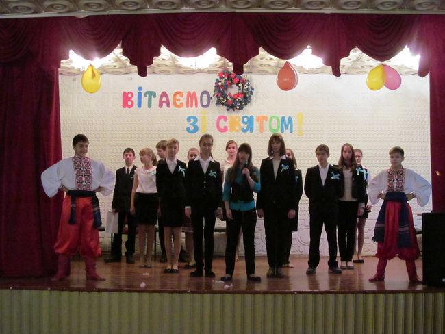 Завершенням свята став виступ учнів 8-Г класу. І тут яскраво виявились таланти і віртуозність дружного колективу: музика, пісні, навіть на екскурсію у музей воскових фігур запросили глядачів учнів 8-Г класу. Різноманітні “визначні” постаті у музеї були дуже яскраві, а як талановито з тонким гумором, провів усіх по музею екскурсовод – класний керівник Кравець Олексій Анатолійович! І, мабуть, найколоритнішою у музеї була прибиральниця, роль якої чудово зіграв учень 8-Г класу Богач Антон.