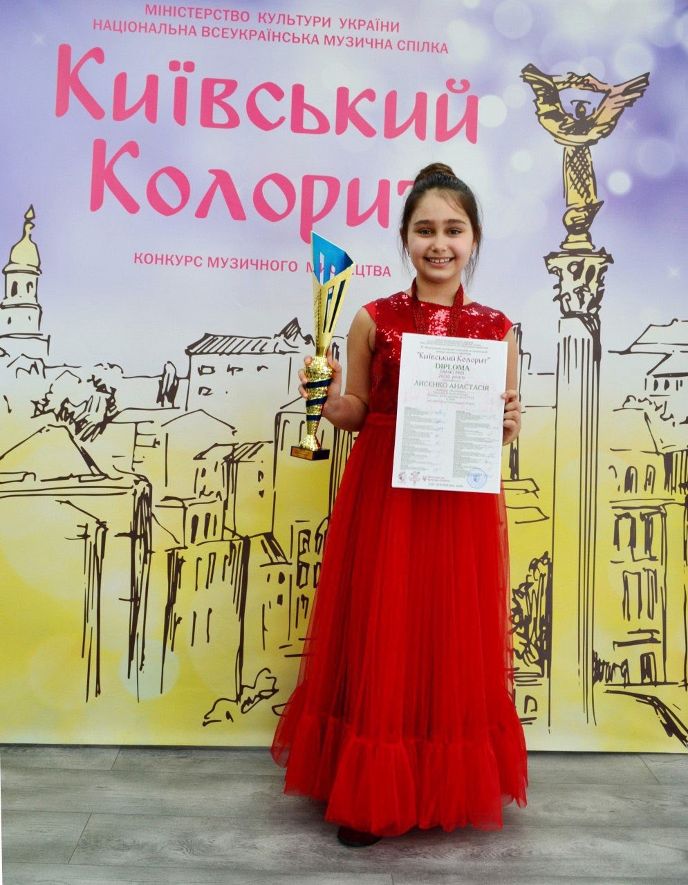 Учениця Київської дитячої музичної школи № 22 Лисенко Анастасія яскраво заявила про себе на XV Міжнародному двотуровому учнівському та студентському конкурсі музичного мистецтва «Київський колорит», який відбувся у Києві за підтримки Міністерства культури України та Національної всеукраїнської музичної спілки.