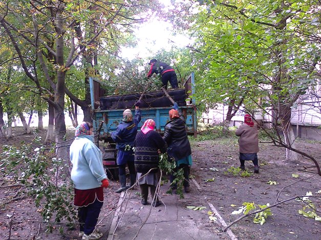 Роботи по відновленню благоустрою прибудинкових територій після аварійних розриттів тривають на території КП «РЕО-1». Комунальники відновлюють газони, проводять вивезення кронованих та сухостійних дерев.