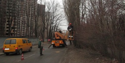 обрізці та очищенню дерев від омели на вулиці Сім’ї Сосніних. Після виконаних робіт працівники зеленого господарства прибрали гілля та передробили його тракторною дробильною установкою, щоб в подальшому використати для потреб підприємства.
