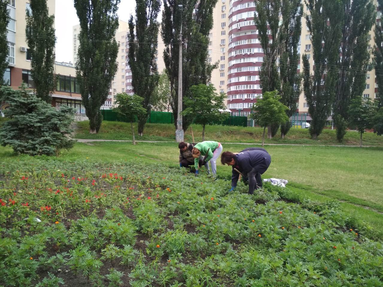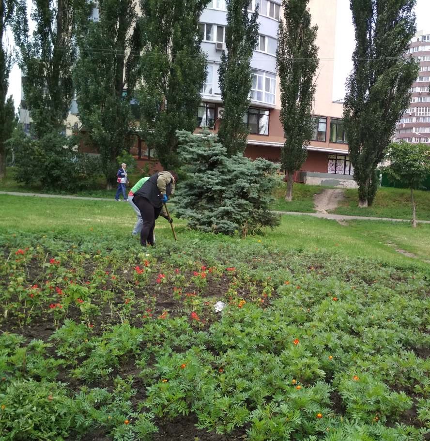 Щоб доглянуті квітники постійно милували очі мешканців та гостей Святошинського району, озеленювачі КП УЗН вчасно прополюють їх та розпушують грунт навколо рослинок після поливу, а також підживлюють мінеральними добривами для пишного їх квітування. Наразі у черговий раз прополено, розпушено та підживлено клумби у сквері на розі проспекту Перемоги і вулиці Крамського та на транспортній розв’язці між бульваром Кольцова і вулицею Володимира Покотила.