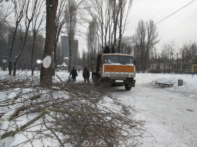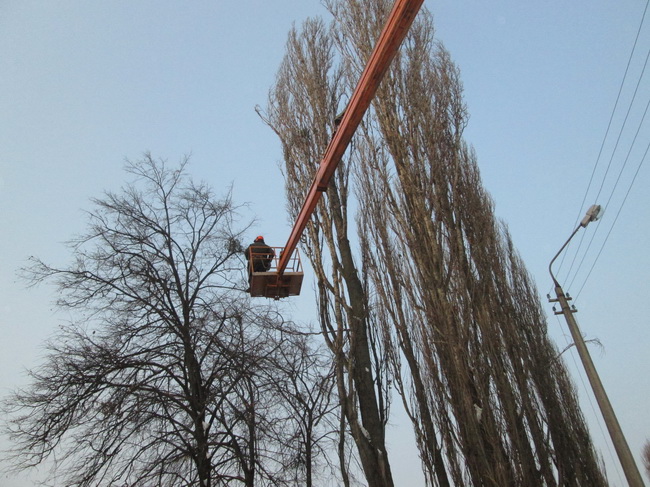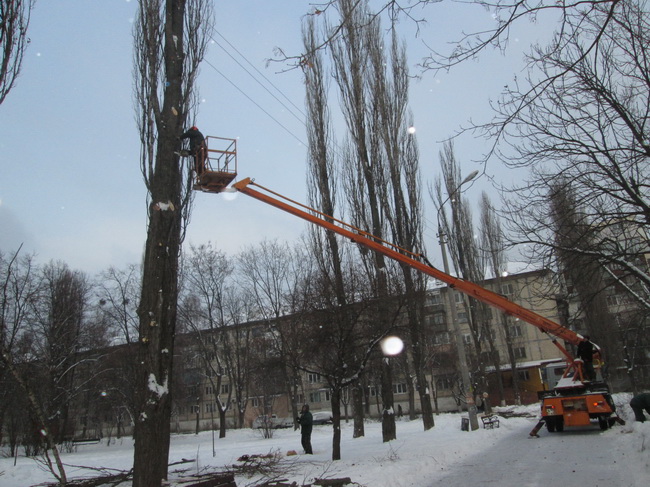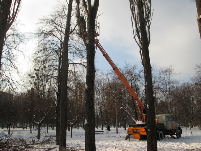 На балансових територіях комунального підприємства «По утриманню зелених насаджень Святошинського району» продовжуються чергові роботи по санітарній обрізці та очищенню дерев від омели. У парку Потапова, 22 січня, працівниками механізованої дільниці № 7, з застосуванням телескопічної вишки та вручну, були очищені 3 дерева від омели та виконано санітарну обрізку 33 дерев. Також зазначимо, що на вулиці Потапова цього дня завершились роботи по санітарній обрізці дерев. Протягом робочого тижня, паралельно з виконанням вказаних робіт, працівниками зеленого господарства прибрано та вивезено на спеціальний майданчик понад 88 м3 деревини та сухого гілля.
