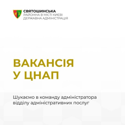 Якщо ви уважні до деталей, відповідальні та готові працювати в команді професіоналів — приєднуйтеся до ЦНАП Святошинського району.