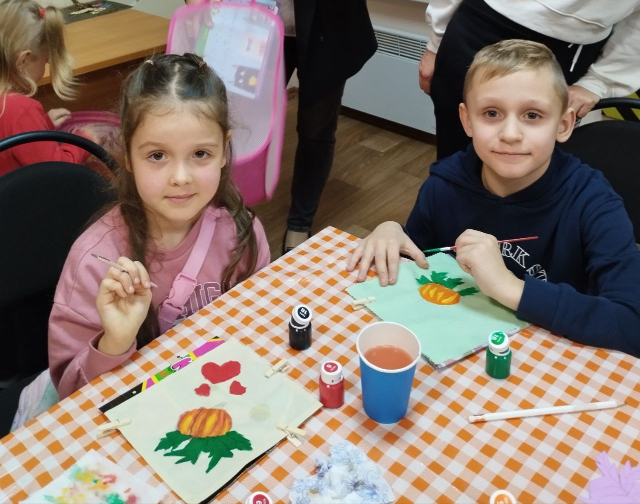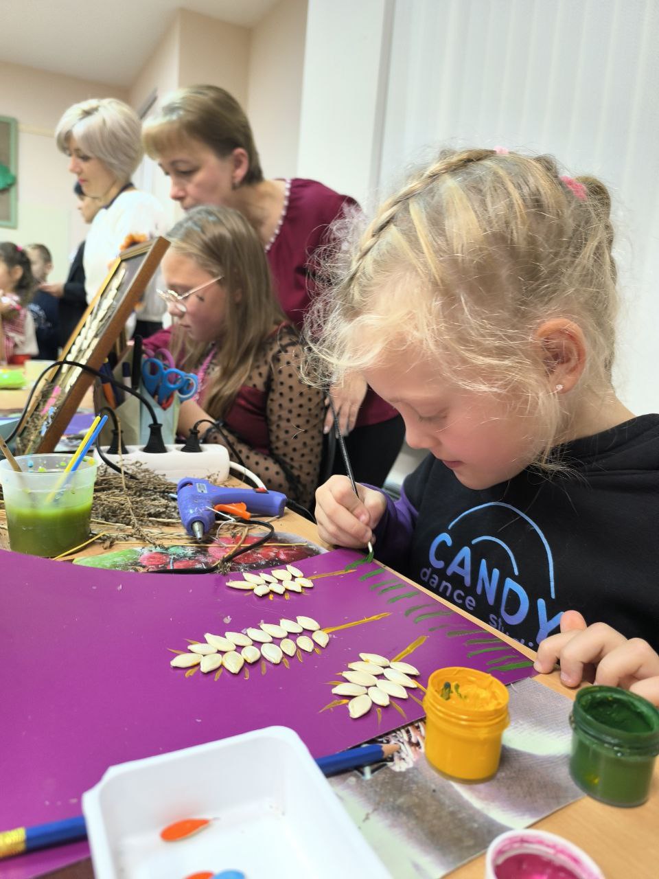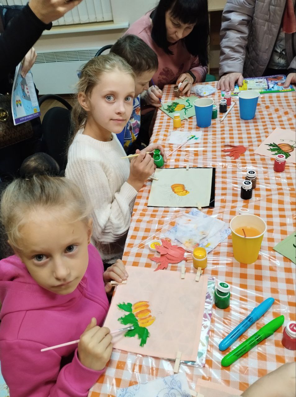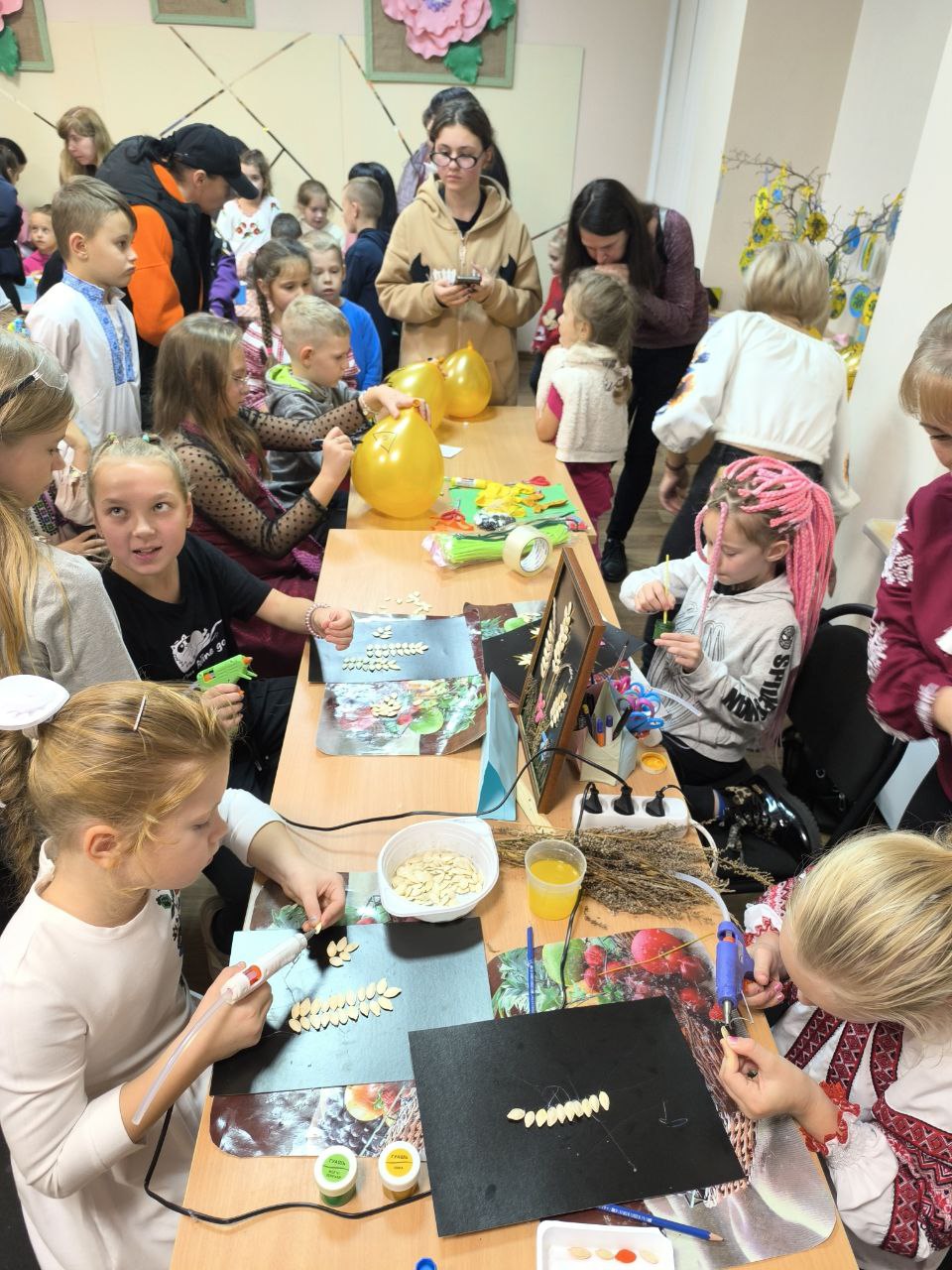 Діти із великим задоволенням брали участь у тематичних творчих майстер-класах: «Паперовий гарбуз», «Кулькові гарбузики», малювання «Український гарбуз», аплікація з гарбузового насіння «Флора України», розпис тканини «Гарбузова серветка», родинна творчість «Велес», які були проведені під керівництвом наших талановитих педагогів.
