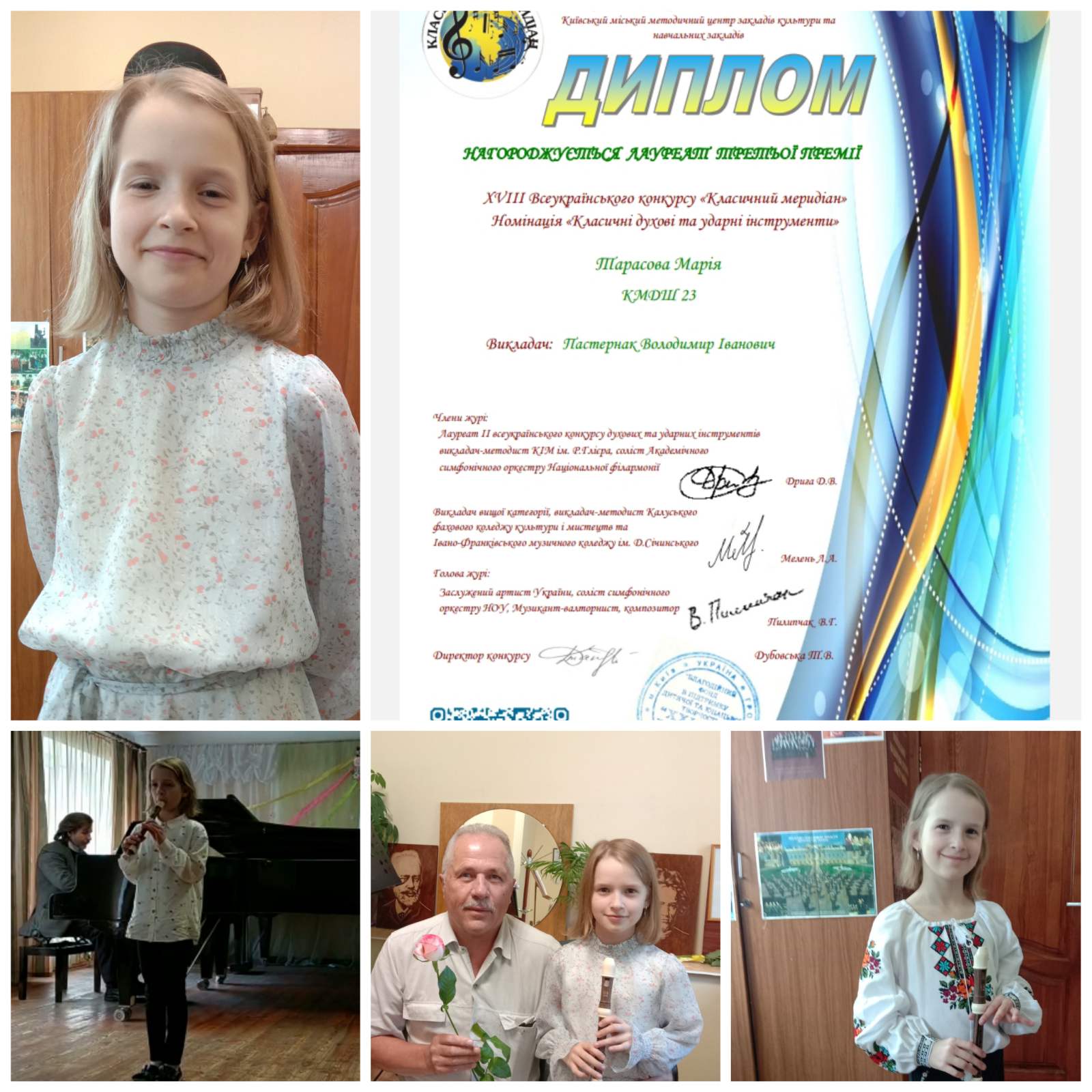 Тарасова Марія (блок-флейта, викладач Володимир Пастернак, концертмейстер Віктор Омельченко) стала лауреатом III премії;