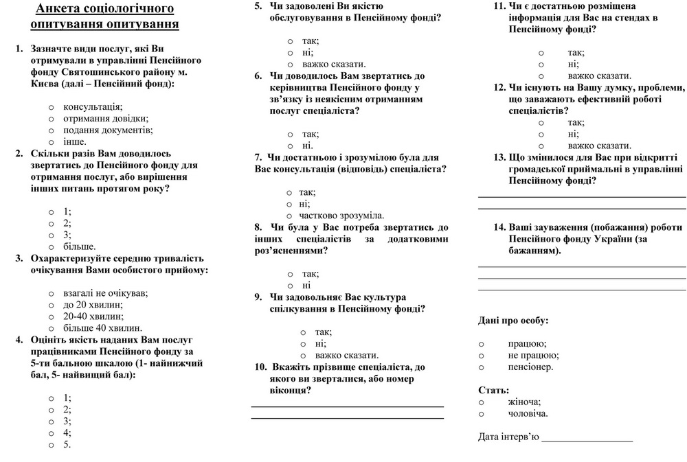 У Громадській приймальні Управління Пенсійного фонду України в Святошинському районі м. Києва проводиться соціологічне опитування