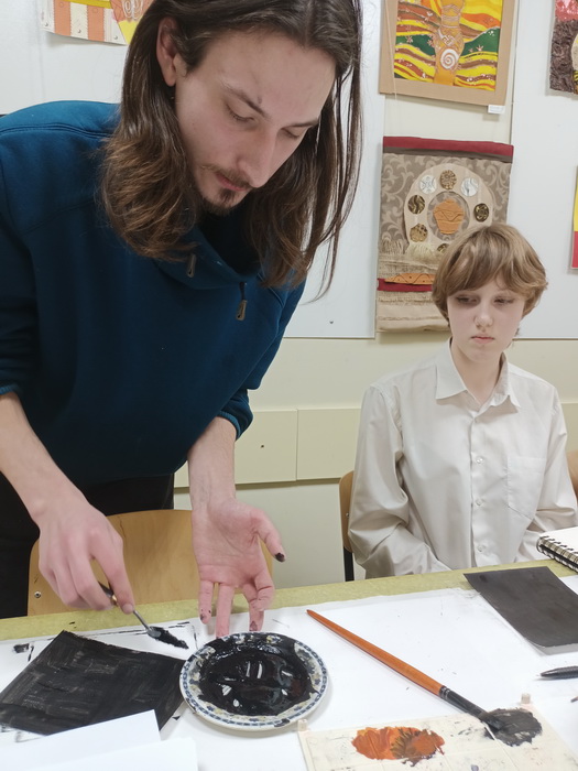 24 лютого в Київській дитячій художній школі № 5 розпочато міні-курс майстер-класів «Знайомство з сучасними графічними техніками. Гратаж» для учнів старших класів. Студенти Національної академії образотворчого мистецтва і архітектури: Роман Павелко, Валентин Кулаков, Єлизавета Павук розповідають і показують учням художньої школи послідовність роботи з технікою гратаж.