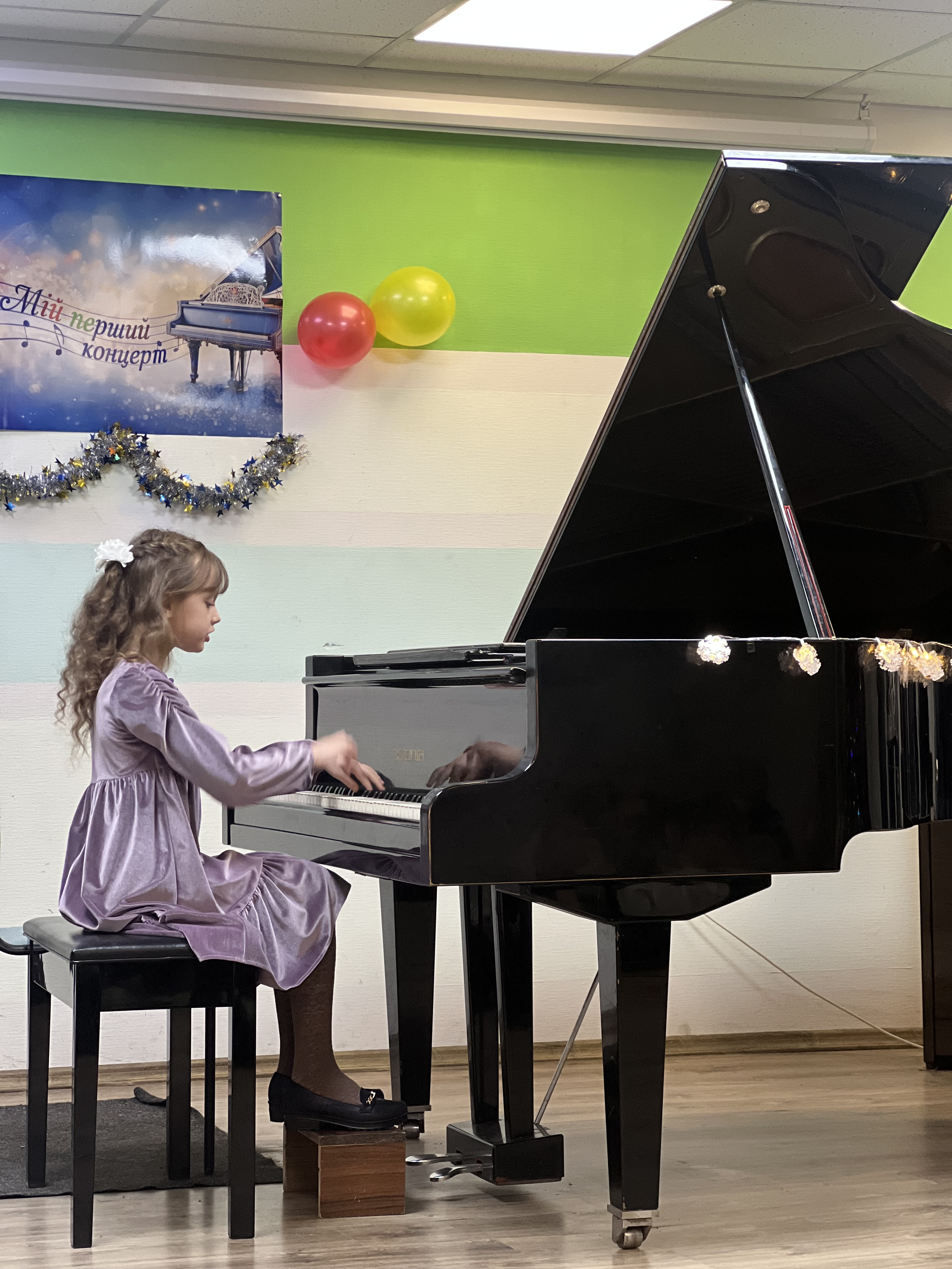 Це був затишний, хвилюючий і дуже щирий вечір, адже на сцену вперше вийшли маленькі піаністи — учні першого класу фортепіанного відділу Київської дитячої музичної школи № 22. Для кожної дитини це справжня подія: перші оплески, перше поклони, перші музичні емоції, які запам’ятовуються на все життя. Підготувала концерт викладачка фортепіанного відділу Лариса Іванько — з її теплом і підтримкою діти сміливо зробили свій перший крок у світ музики. А провела - учениця школи Тетяна Кошова, створивши на сцені атмосферу свята й натхнення. Наприкінці заходу діти урочисто склали музичну клятву — пообіцяли старанно вчитися, любити музику і приносити радість своїми виступами.