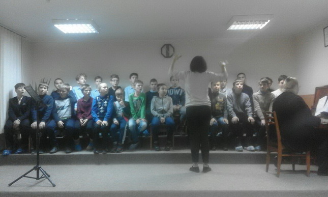 На початку уроку викладач показала роботу над вокально-інтонаційними вправами та розспівками, потім колектив виконував і опрацьовував твори «Пісенька про Миколая» І. Лайко на слова В. Круковської, «The Lord bless you аnd keep you» І. Дж. Раттера, «Не погасне сонце» І. Кириліної на слова В. Кудрявцева.