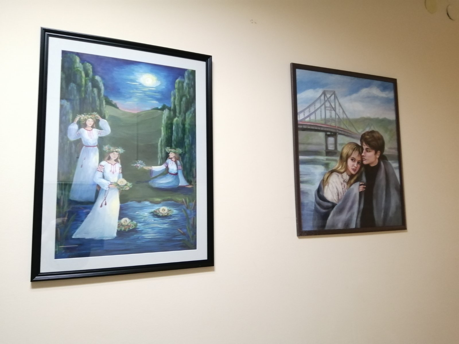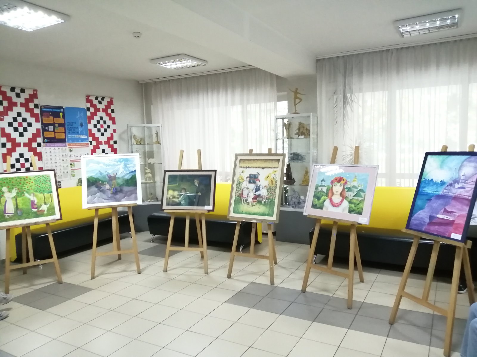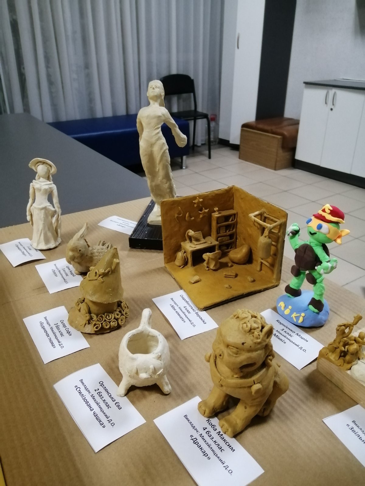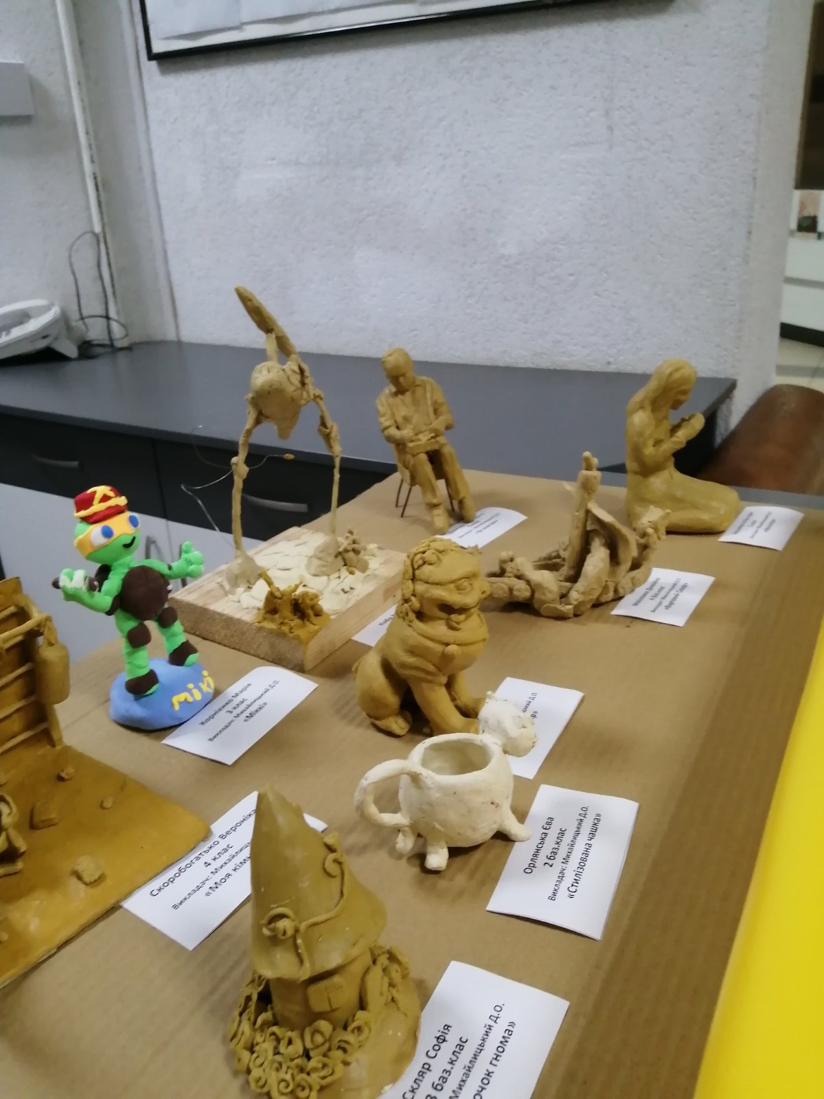 У холі школи гостей свята зустрічала виставка творчих робіт учнів класу образотворчого мистецтва, на якій демонструвались кращі роботи: “Київська регата” Скоробагатько Вероніки, “Чумацький шлях”, “Яблунька” Безсмертної Вікторії, “Важливі турботи протягом року”, Макансі Джани, “Золоті куполи” Моісеєнко Домініки, “Подолання” Рави Софії, “Гортаючи сторінки історії Києва” Корбут Віолетти, “Купальські віночки” Гордєєвої Надії (викладач Лариса Кузнецова) та інші, а також роботи зі скульптури (викладач Данило Михайлицький).