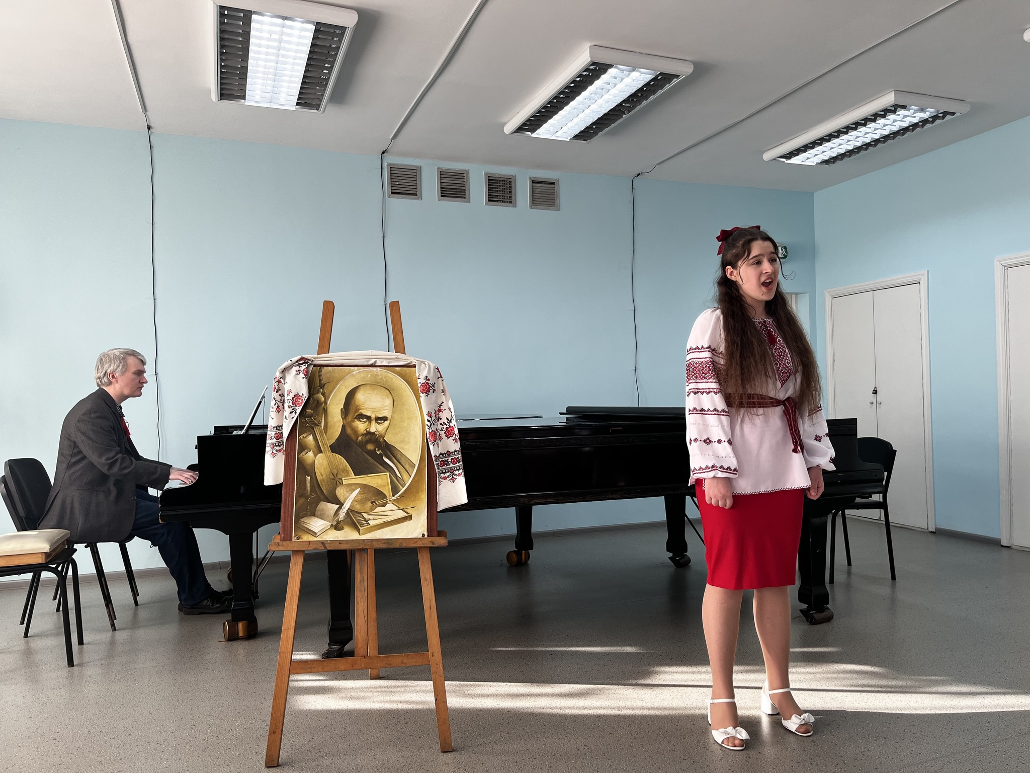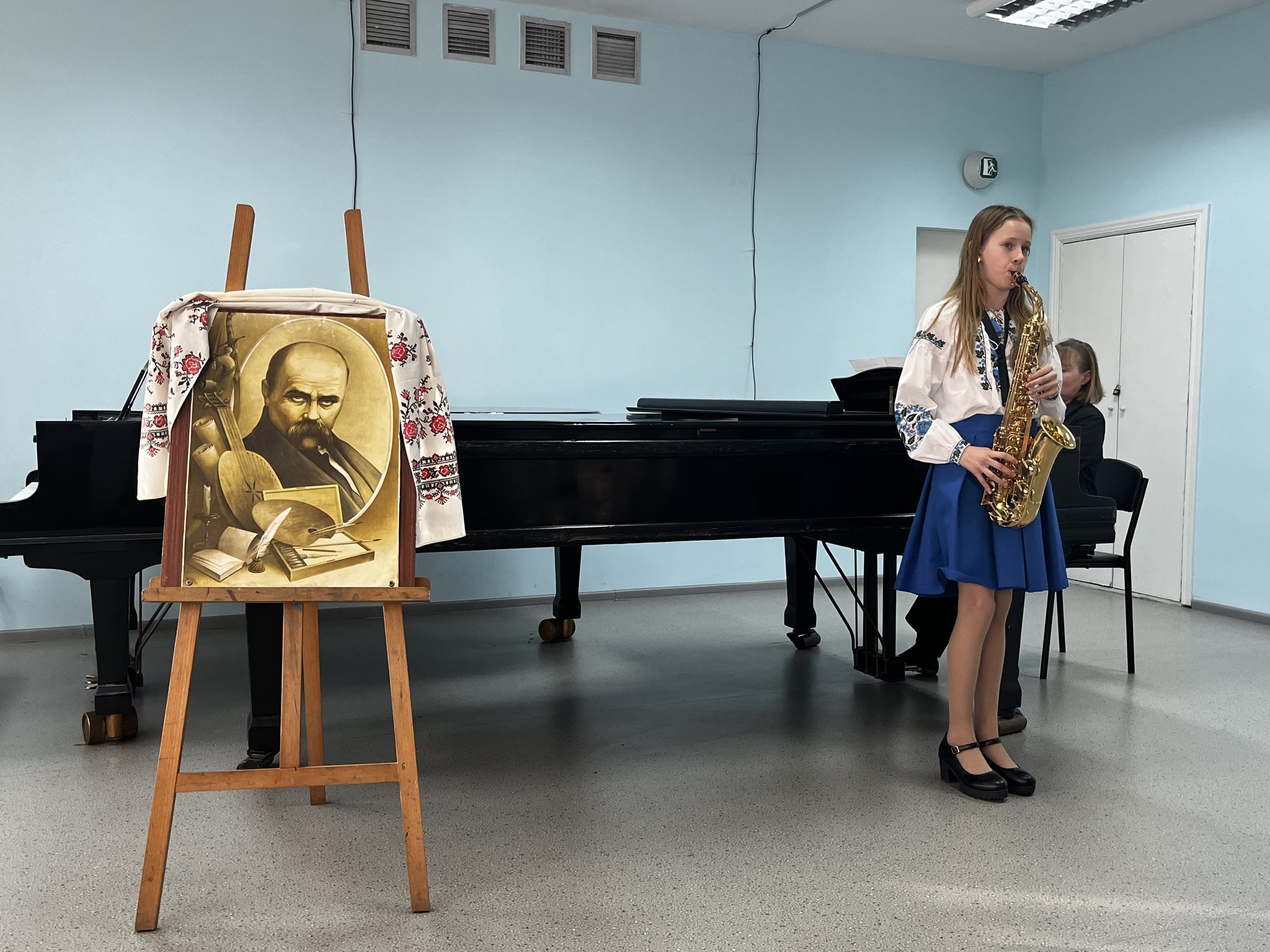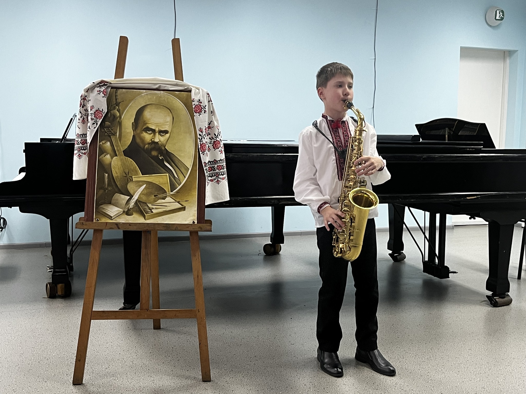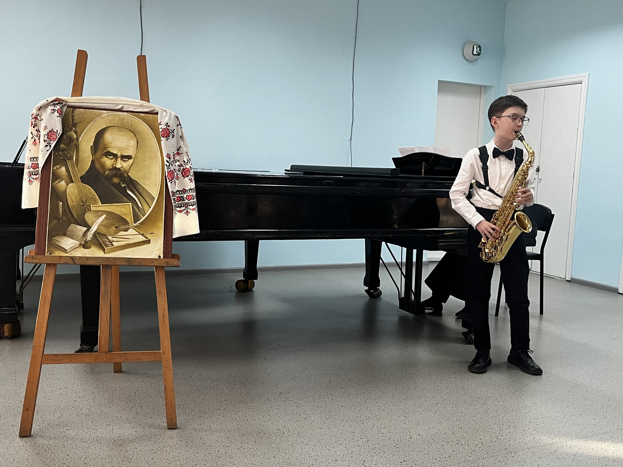 Зі сцени лунали твори українських композиторів, пісні на слова Шевченка, а також його поезія у виконанні вихованців вокально-хорового відділення: Шпоти Варвари (викладачка Оксана Костенко, концертмейстер Максим Гришин), Шершньової Дарини, Васянович Софії, Лазаревої Аліси (викладачка Марія Андрюк), Князєвої Діани (викладачка Ксенія Ломтєва), Мельничук Вероніки (викладачка Світлана Крештофова, концертмейстер Захар Євтушенко), оркестрового відділення: Поліщука Марка, Ковтун Світлани, Сало Даніїла, Губського Володимира (викладачка Олена Рура, концертмейстерка Лідія Дюбург), Яковенко Олексія, Тихомирова Іллі (викладач Степан Рура, концертмейстерка Лідія Дюбург), Гудова Андрія, Артема Гордика (концертмейстерка Тетяна Соколова), фортепіанного відділу: Самчук Ксенії та Шпак Дарини (викладачі Наталія Оржехівська, Максим Майборода), Вауліної Аліси (викладач Юрій Водик), відділення народних інструментів: Тимощук Марії (викладачка Надія Турейська, концертмейстерка Ірина Блонська), відділення естетичного виховання, клас театрального мистецтва: Анган Аліни, Зеленої Аліни, Ковальчука Захара, Соболєвої Евеліни (викладачка Олена Зброцька). Концерт провела викладачка Марія Бєлкова.