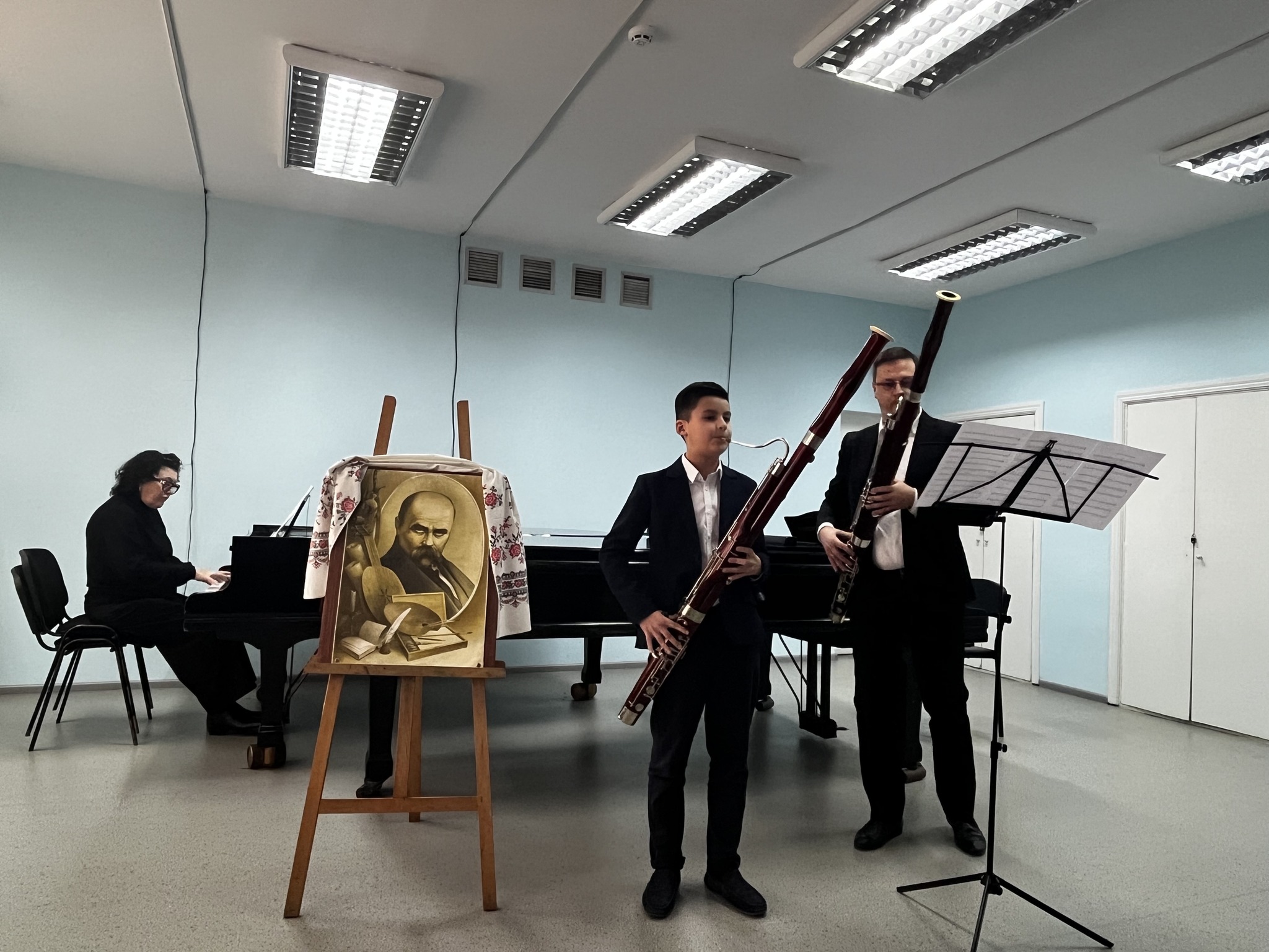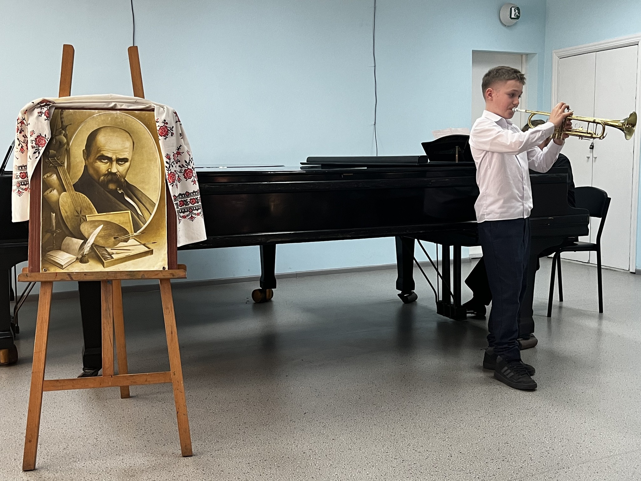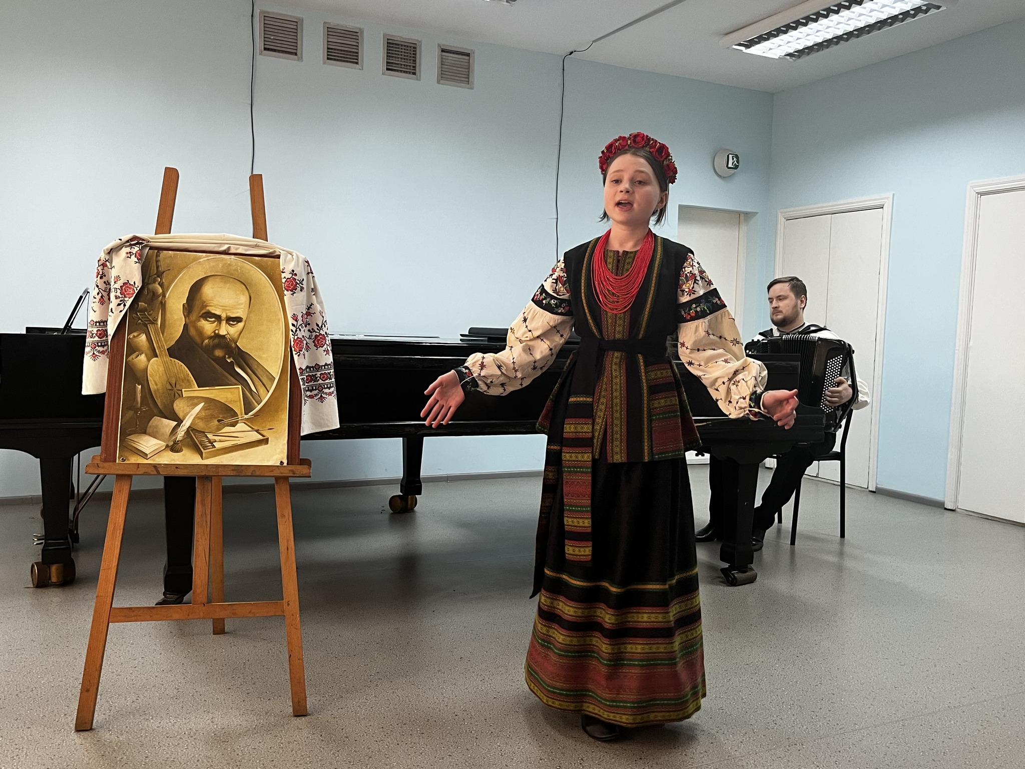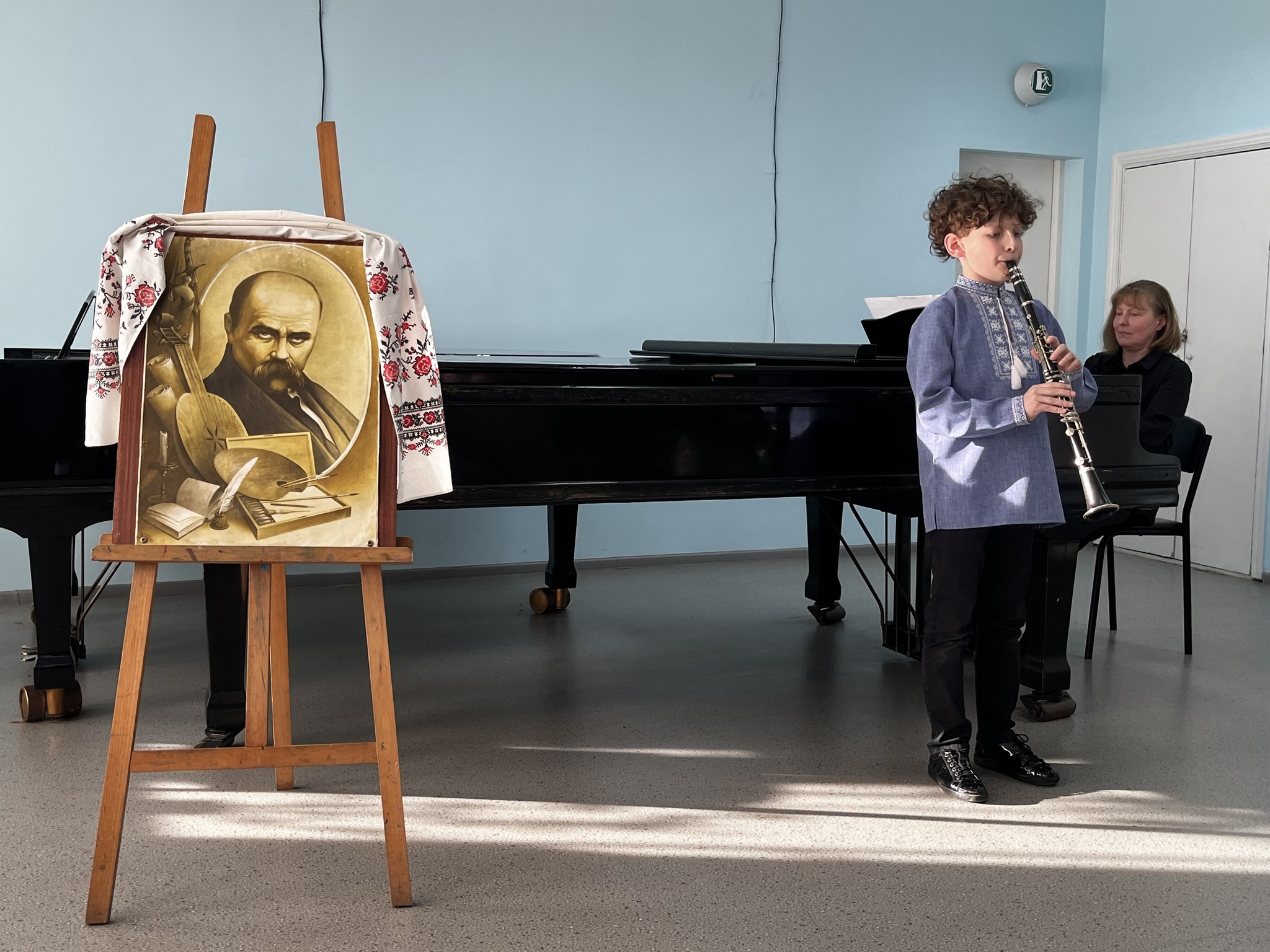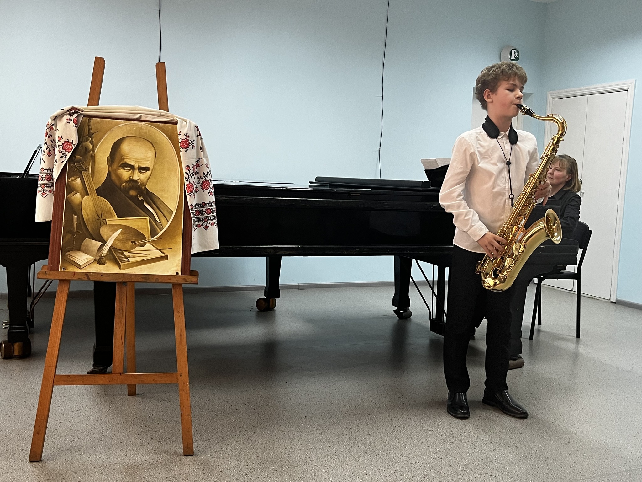 Зі сцени лунали твори українських композиторів, пісні на слова Шевченка, а також його поезія у виконанні вихованців вокально-хорового відділення: Шпоти Варвари (викладачка Оксана Костенко, концертмейстер Максим Гришин), Шершньової Дарини, Васянович Софії, Лазаревої Аліси (викладачка Марія Андрюк), Князєвої Діани (викладачка Ксенія Ломтєва), Мельничук Вероніки (викладачка Світлана Крештофова, концертмейстер Захар Євтушенко), оркестрового відділення: Поліщука Марка, Ковтун Світлани, Сало Даніїла, Губського Володимира (викладачка Олена Рура, концертмейстерка Лідія Дюбург), Яковенко Олексія, Тихомирова Іллі (викладач Степан Рура, концертмейстерка Лідія Дюбург), Гудова Андрія, Артема Гордика (концертмейстерка Тетяна Соколова), фортепіанного відділу: Самчук Ксенії та Шпак Дарини (викладачі Наталія Оржехівська, Максим Майборода), Вауліної Аліси (викладач Юрій Водик), відділення народних інструментів: Тимощук Марії (викладачка Надія Турейська, концертмейстерка Ірина Блонська), відділення естетичного виховання, клас театрального мистецтва: Анган Аліни, Зеленої Аліни, Ковальчука Захара, Соболєвої Евеліни (викладачка Олена Зброцька). Концерт провела викладачка Марія Бєлкова.