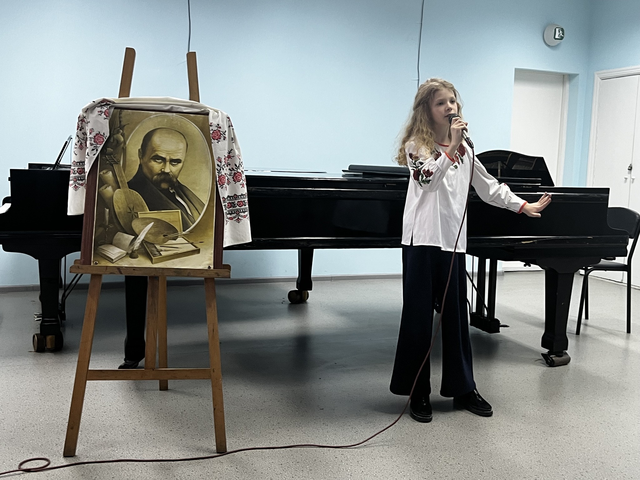 Учні та викладачі Київській дитячій школі мистецтв № 8 школи підготували щиру й натхненну програму, яка стала творчим віночком пам’яті та шани Великому Кобзареві.