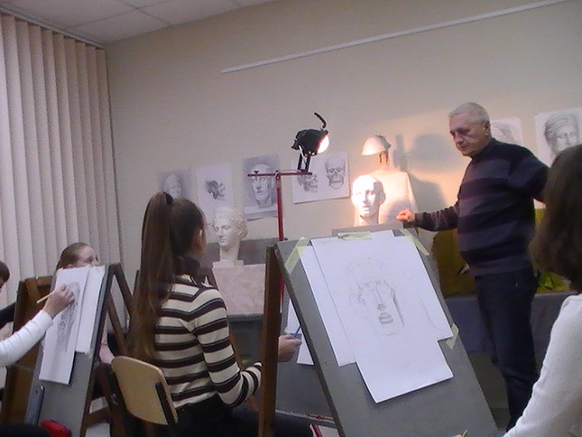 Урок за темою «Рисунок гіпсової голови в площині. Рисунок з натури гіпсової кулі» провели викладачі школи: Ріпа Олександр Миколайович та Єременко Наталія Миколаївна.
