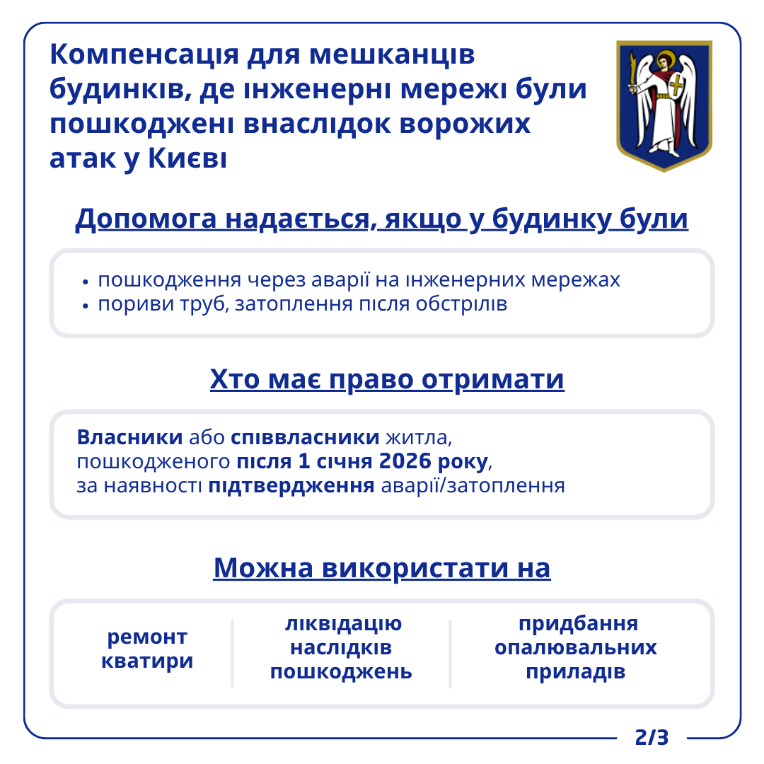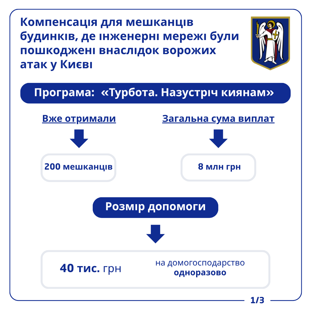 У Києві вже 200 мешканців будинків, де інженерні мережі були пошкоджені внаслідок ворожих обстрілів, отримали по 40 тис. грн (+інфографіки)