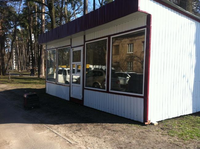 На території скверу по вулиці Котельникова, 26-32, що навпроти житлового будинку по вулиці Верховинній, 28 у Святошинському районі м. Києва, з’явилась самовільно встановлена тимчасова споруда.