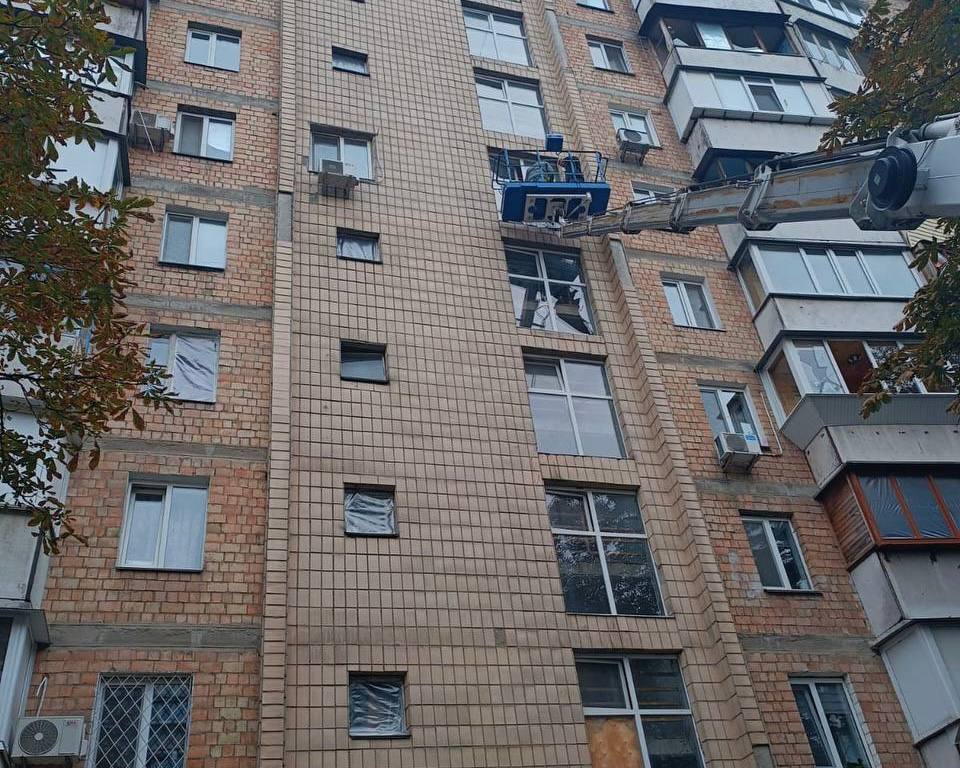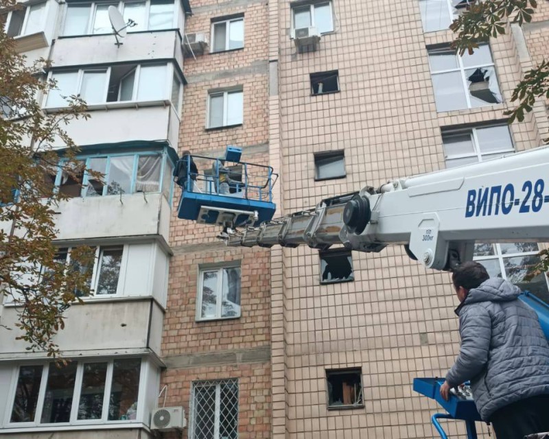 У пошкоджених в районі будинках комунальники вже закрили основний масив вибитих вікон