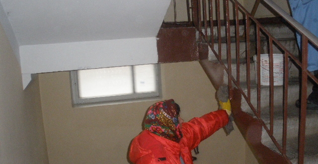 Спеціалісти РЕО здійснили малярні роботи після пожежі на 8-9-му поверхах по вулиці Л. Курбаса, 1-а.