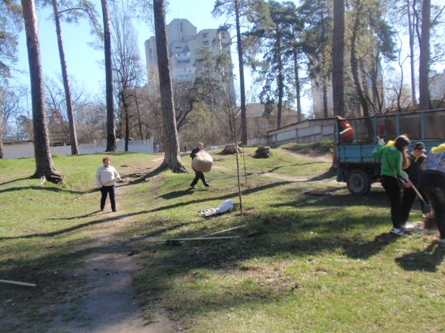 Так, 29 березня 2014 року педагогічний колектив СЗШ № 140 на чолі з директором школи Оленою Семенюк та керівником групи з централізованого господарського обслуговування закладів освіти районного управління освіти Сергієм Медвідєм попрацювали в одному з мікрорайонів Святошина на вулиці Верховинній, де біля озера розташована територія для відпочинку.