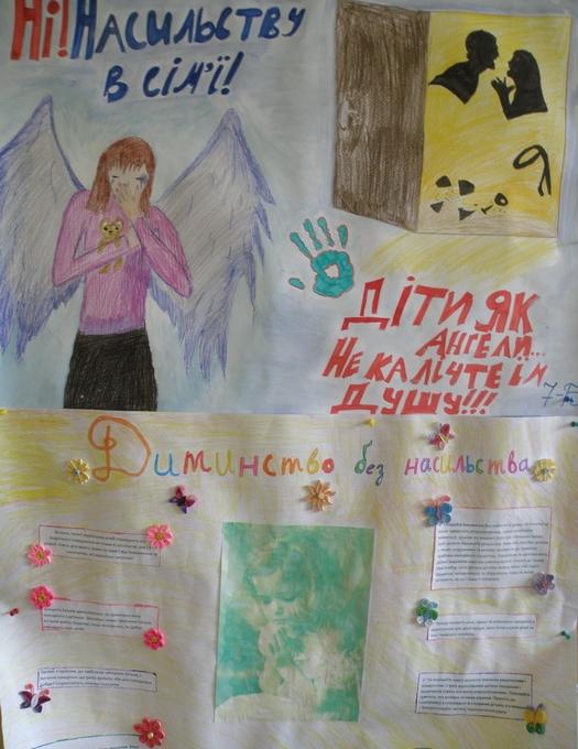 Серед школярів практичним психологом Медвідь Н.Ю. та соціальним педагогом Приймак Л.І. з метою покращення взаємостосунків між членами родини та ознайомленням дітей з поняттям «насильство в родині», проведені соціальні диктанти з творчим завданням «Насильство в сім’ї». Результати диктантів будуть обговорені на батьківських зборах, що відбудуться 5 грудня.