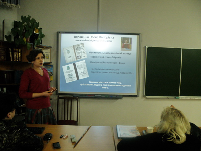 Досвідом своєї роботи щодо формування життєвих діяльнісно-творчих компетентностей в роботі з обдарованими учнями поділилися вчителі біології СШ №304 Волошина Аліна Михайлівна, вчитель ліцею «Еко» № 198 Костюченко Олена Леонідівна розповіла про підготовку учнів до зовнішнього незалежного оцінювання, вчитель СЗШ №281 Циганок Галина Володимирівна, розкрила особливості процесу формування в учнів навичок здорового способу життя на уроках природничого циклу, вчитель СШ №200 Волошина Олена Вікторівна розповіла про використання опорних схем-конспектів для оптимізації навчально-виховного процесу та проектну діяльність учнів, вчитель СЗШ №215 Сафоннікова Віра Анатоліївна розповіла про поглиблене допрофільне вивчення природничих наук в 6-11 класах, вчитель СЗШ №230 Бойправ Лідія Панасівна поділилася з присутніми досвідом використання інтерактивних методів навчання на уроках біології.
