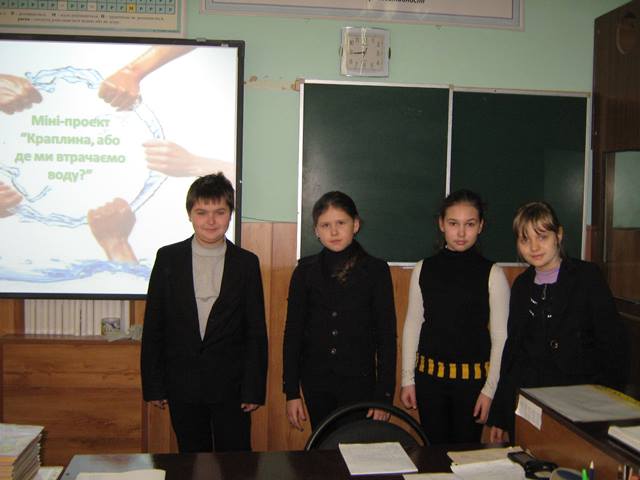 Тому напередодні свята, 20 березня 2014 року, в 5-х класах вчитель природознавства Усата О.А. провела урок-проект на тему «Краплина, або де ми втрачаємо воду».