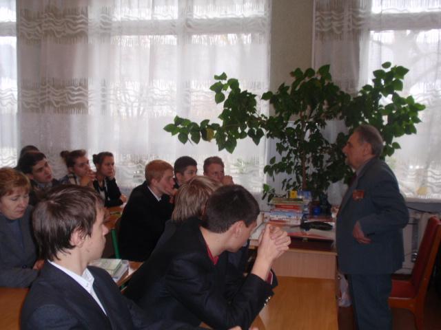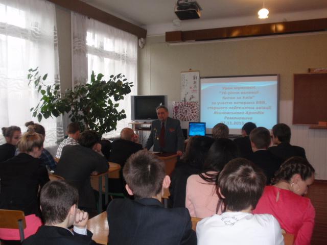 7 листопада незабутньою для дітей стала зустріч з ветераном Великої Вітчизняної війни, старшим лейтенантом авіації Ясиновським А.Р. "70 річниця Великої битви за Київ", який у своїх спогадах повернувся у далекий 1943 рік та розповів учням про нелегку долю визволителів Києва, продемонстрував архівні матеріали та фотографії воєнних часів.