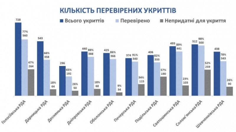 У столиці перевірили понад 80%, тобто 3,8 тисячі укриттів та сховищ: 683 об'єкти потребують облаштування