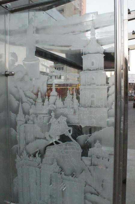 На одній зі стінок вигравіюване панно із зображенням архітектурних пам’яток Києва. Його автором є художник Микола Кочубей, який створював ювілейні монети.