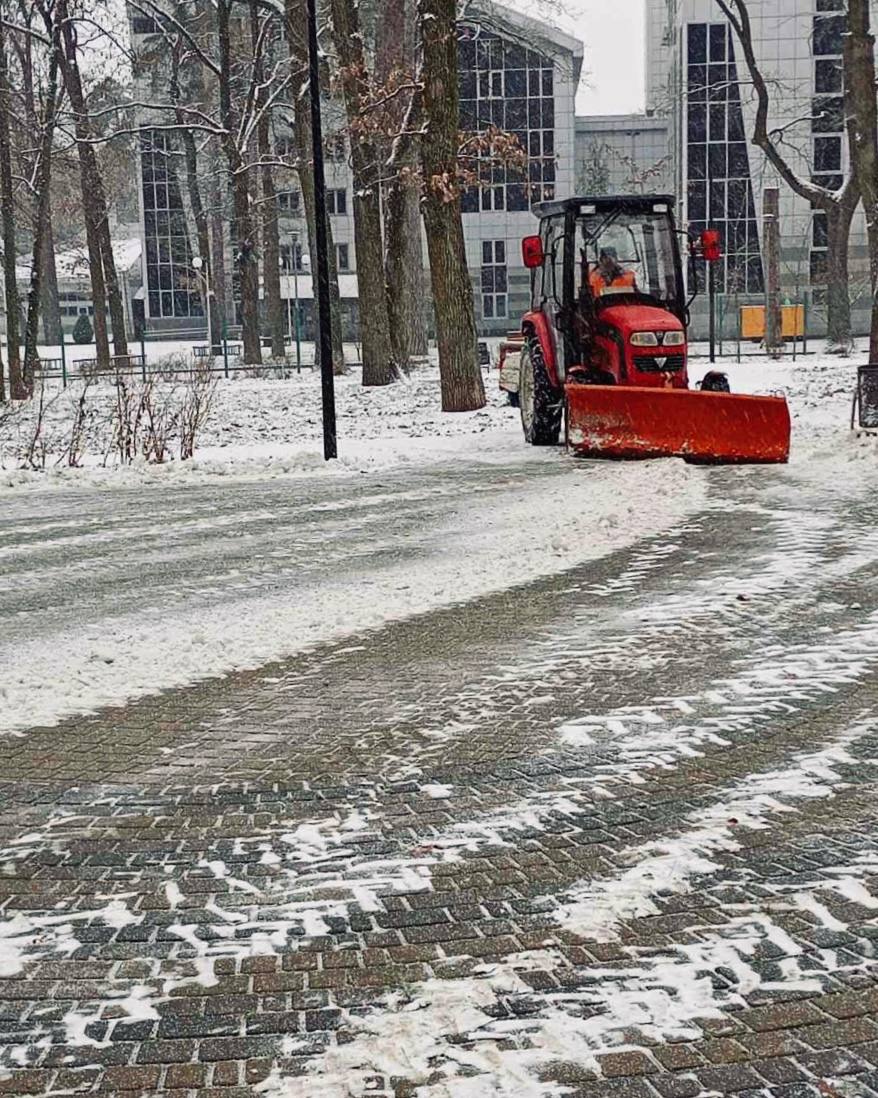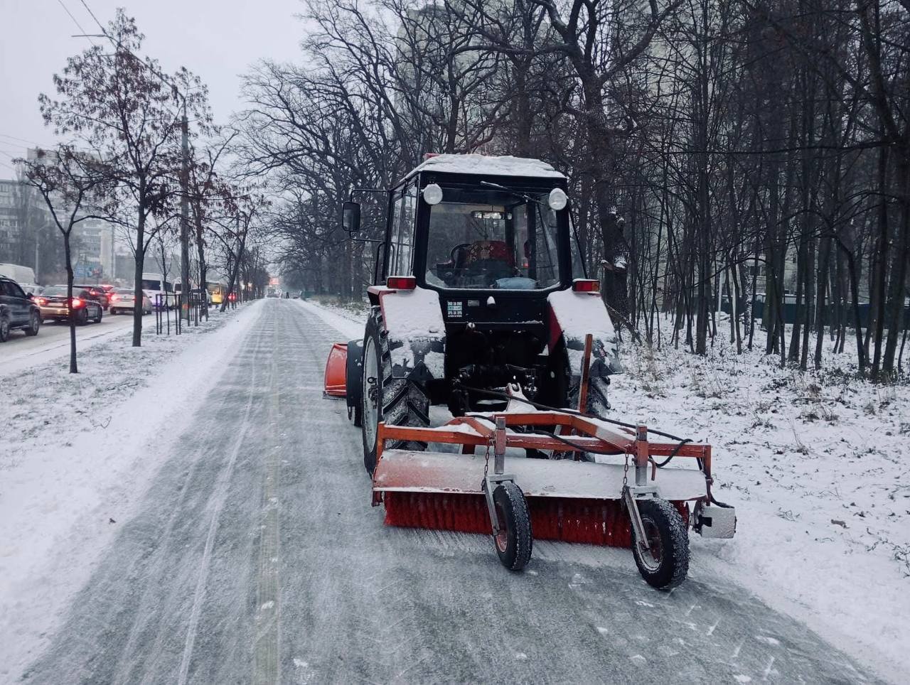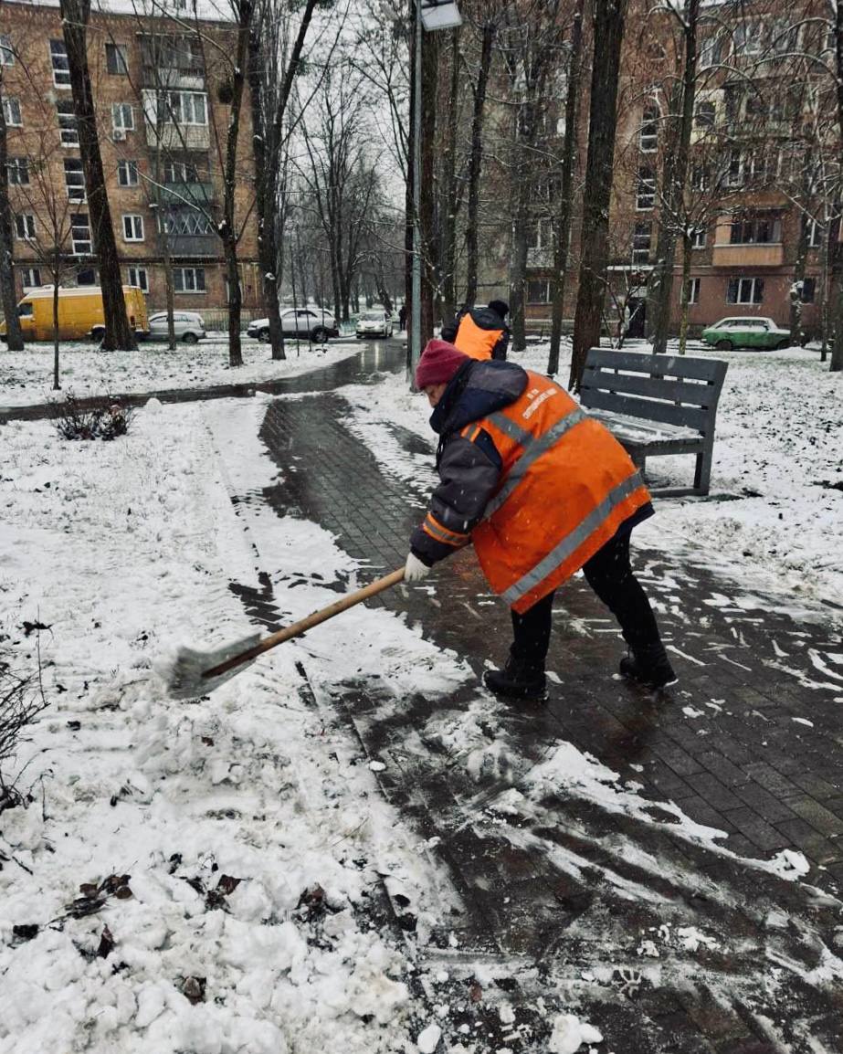 У Святошинському районі проводяться роботи з прибирання снігу та обробки доріг і пішохідних зон