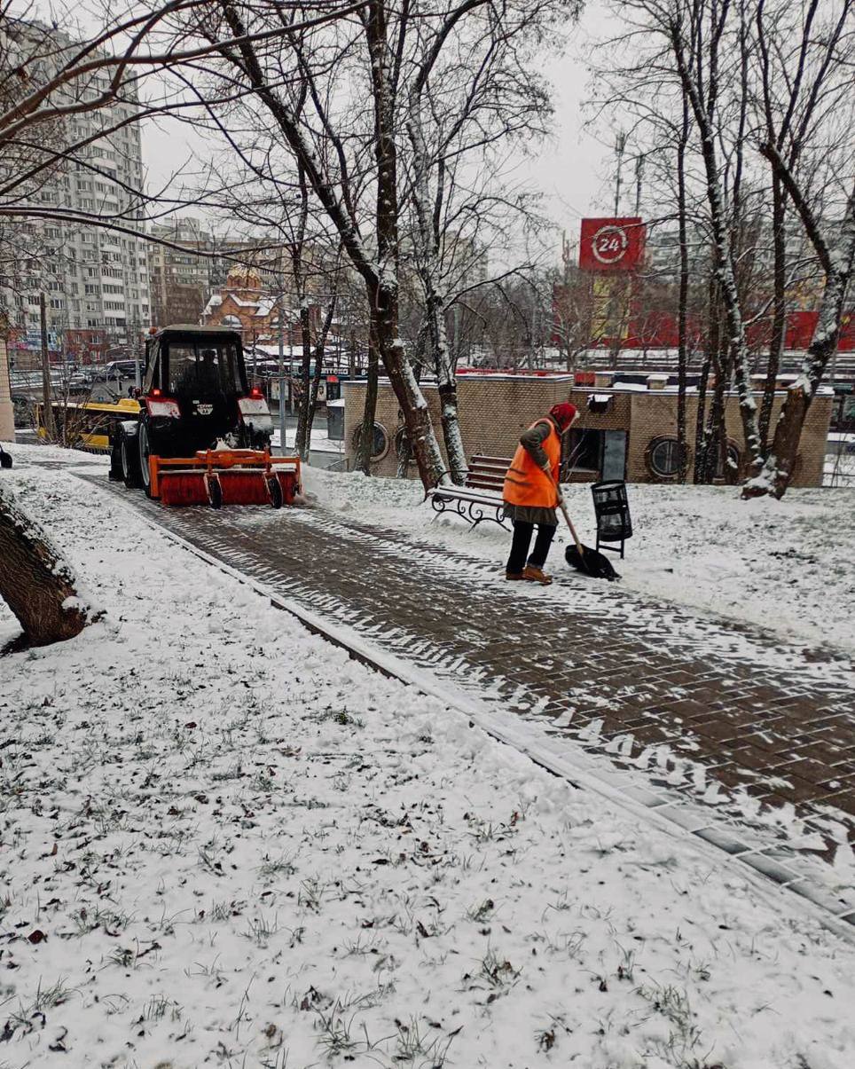 Комунальні служби району працюють у штатному режимі: прибирають проїжджу частину, тротуари, зупинки громадського транспорту, підходи до соціальних об’єктів і громадські простори. Усі служби — на місцях, роботи виконуються відповідно до погодних умов.