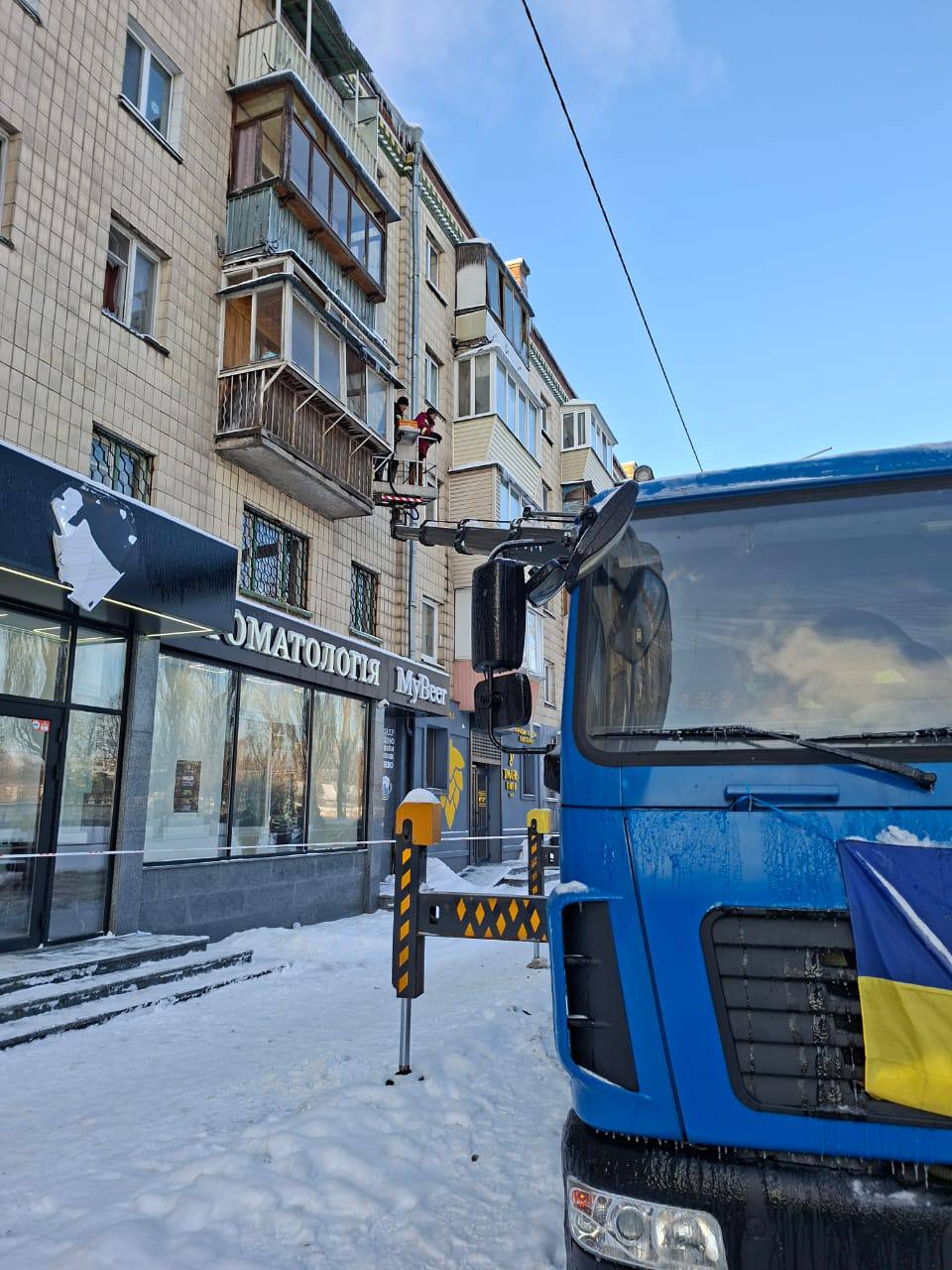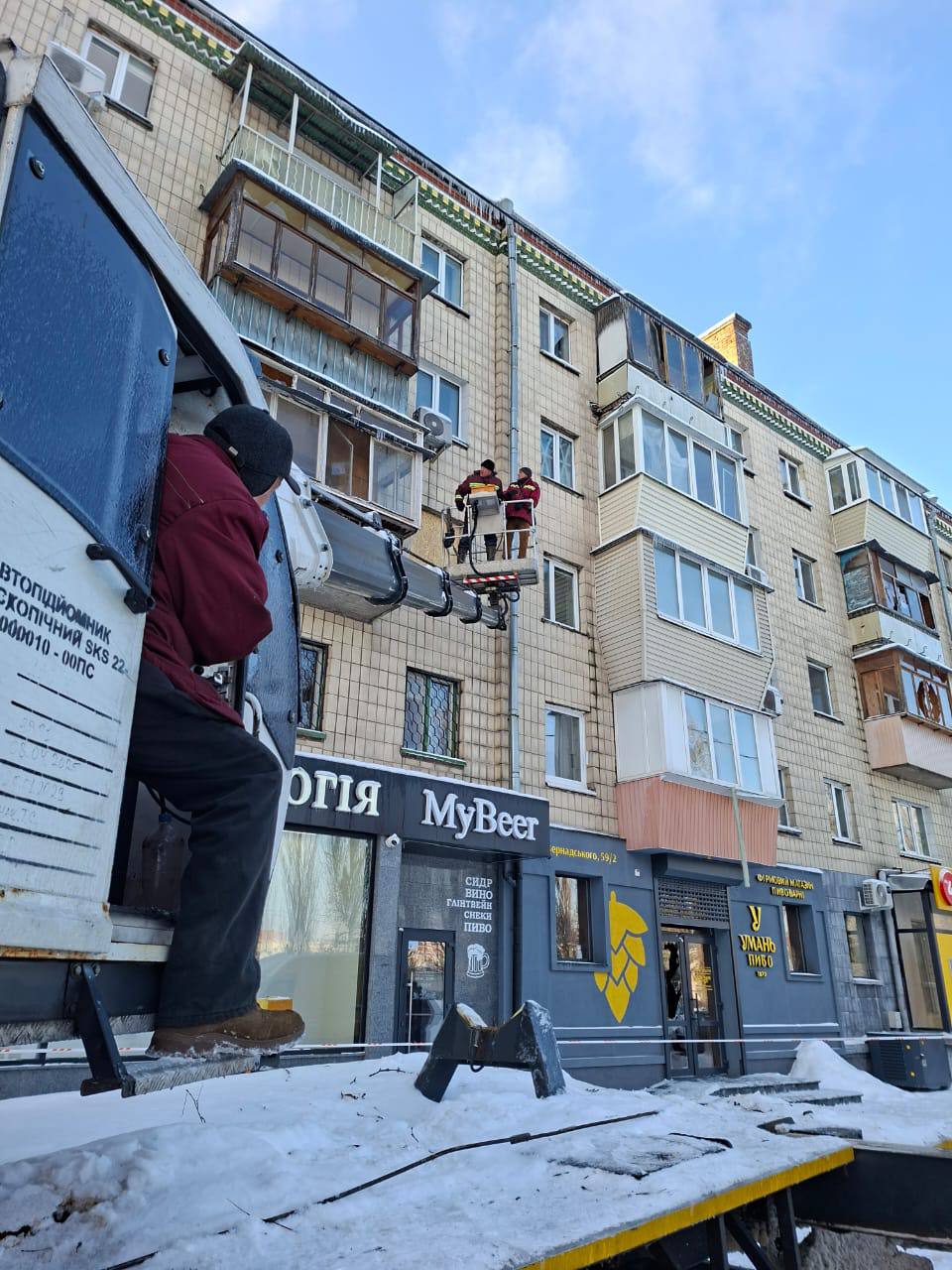 У Святошинському районі тривають роботи з усунення наслідків ворожої атаки по житловій інфраструктурі