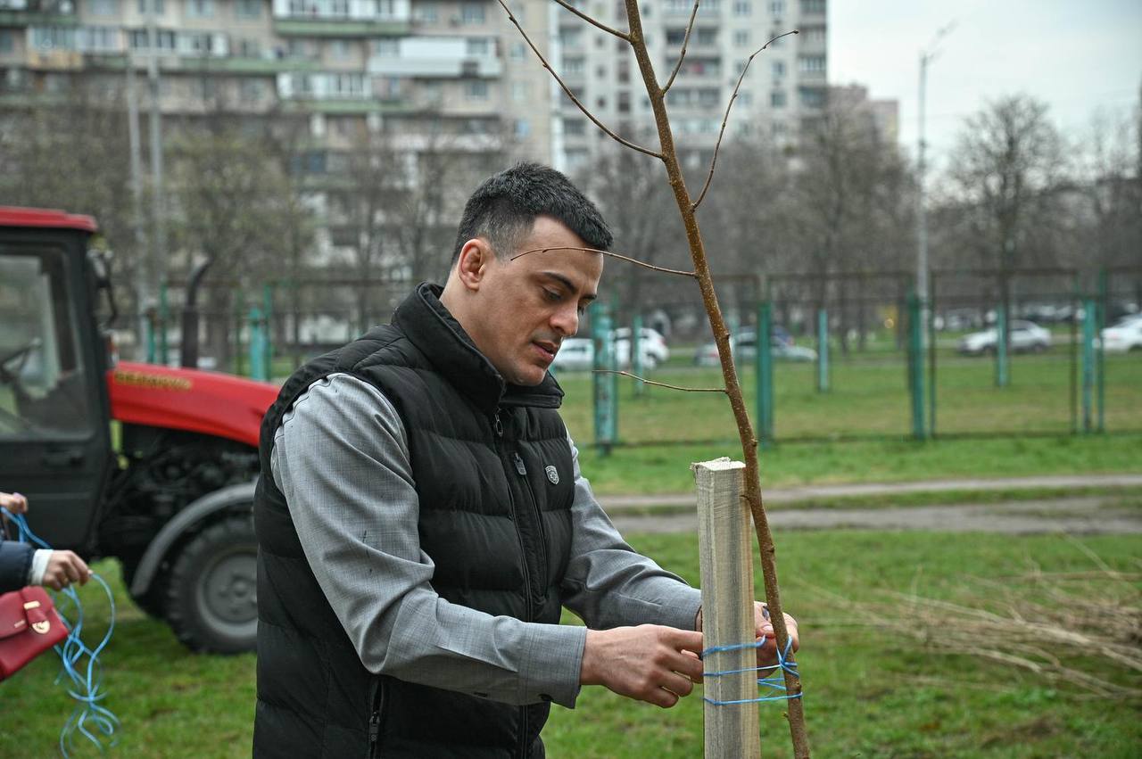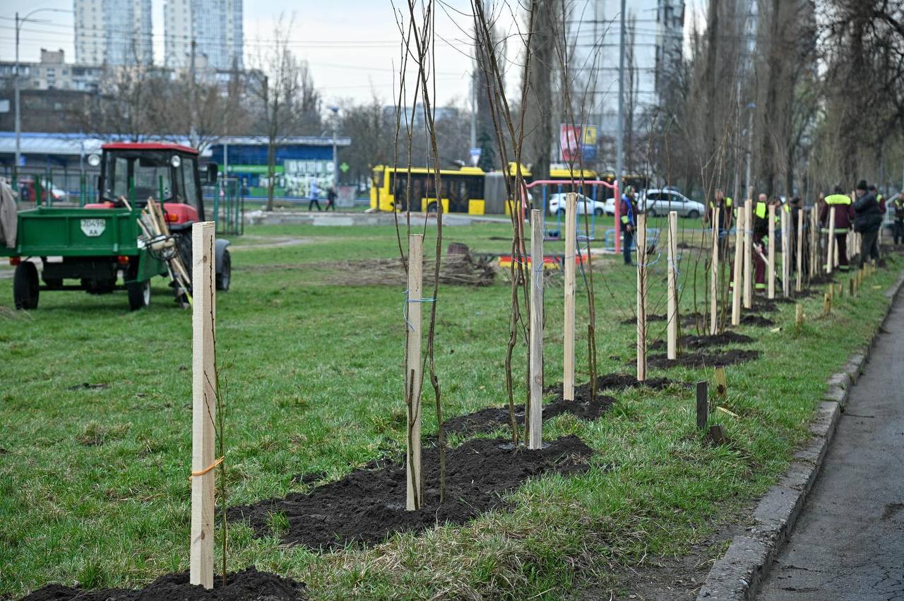 У Святошинському районі в межах двомісячника благоустрою продовжуються роботи з озеленення територій — цього разу на вулиці Якуба Коласа висадили 55 дерев ліщини та фруктових дерев (персик, абрикоса, слива). Зелену зону поступово впорядковують і озеленюють, додаючи більше природного простору.