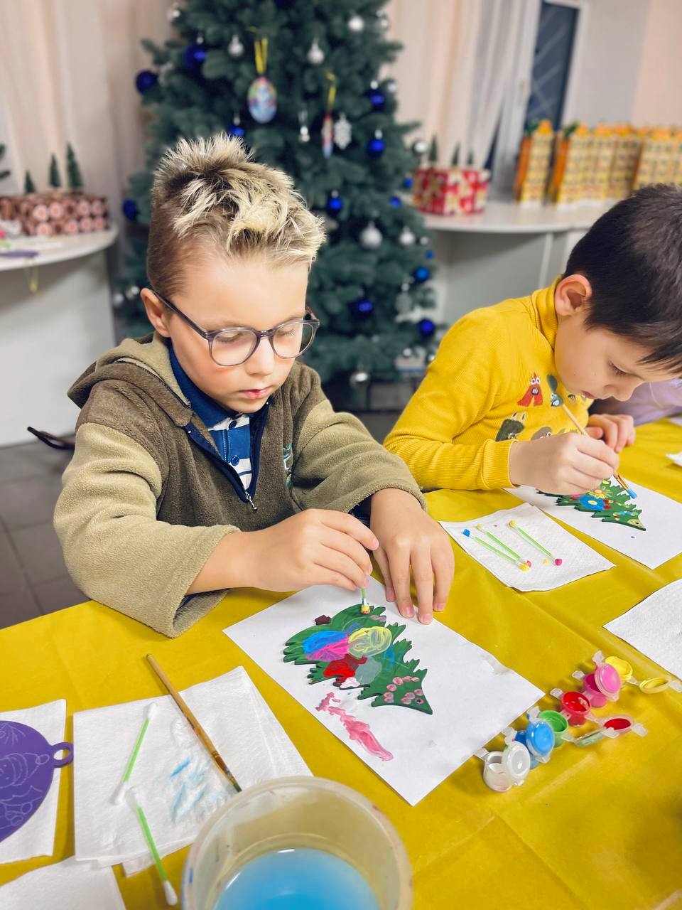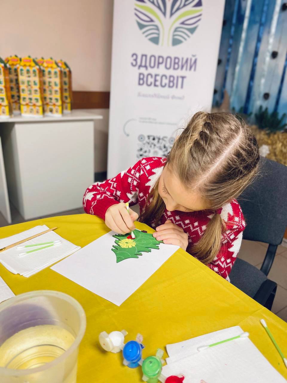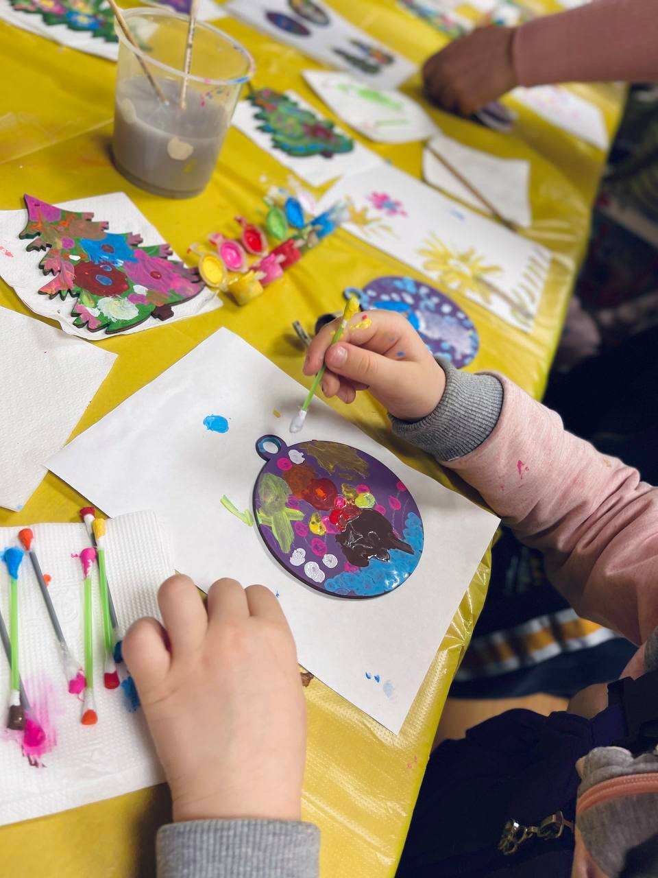 Під час майстер-класу з петриківського розпису діти відкривали для себе красу української традиції через власну творчість. У простих заготовках з’являлися кольори, візерунки й настрій — кожна новорічна прикраса ставала відображенням дитячої фантазії, уважності та щирих емоцій.