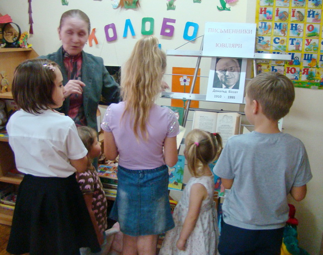 Чергове заняття Школи читання у бібліотеці для дітей «Промінець» Централізованої бібліотечної системи «Свічадо» відділу культури та охорони культурної спадщини присвятили 105-річниці від дня народження Дональда Біссета. Бібліотекар І категорії Галина Василівна Чоні підготувала для дітей та присутніх батьків цікаву розповідь про англійського дитячого письменника, художника, кіноактора і театрального режисера.