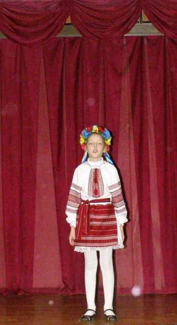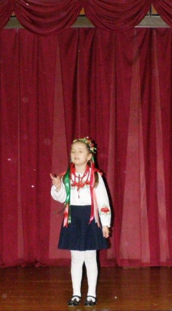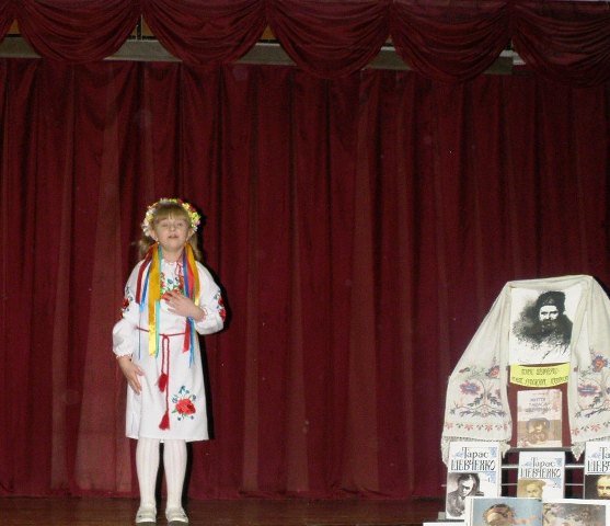 Вдягнені в українські костюми учні 4-А класу під керівництвом свого вчителя Несторук Л.Г. відкрили свято віршами Тараса Шевченка. Продовжили захід учасники конкурсу – читці Шевченкової поезії. Затамувавши подих, присутні в залі учні, вчителі, батьки насолоджувались поезією, яка лунала з дитячих вуст. Перед очима промайнули родючі українські землі, поля золотої пшениці, зелені сади, білі хати, тихі води, ясні зорі і на тлі природи – смуток і горе знедоленого народу.